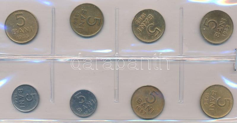 Románia 1952-1957. 5b Ni-sárgaréz (6xklf) + 1963-1966. 5b acél (2xklf) T:XF,VF Romania 1952-1957. 5 Bani Ni-brass (6xdiff) + 1963-1966. 5 Bani steel (2xdiff) C:XF,VF