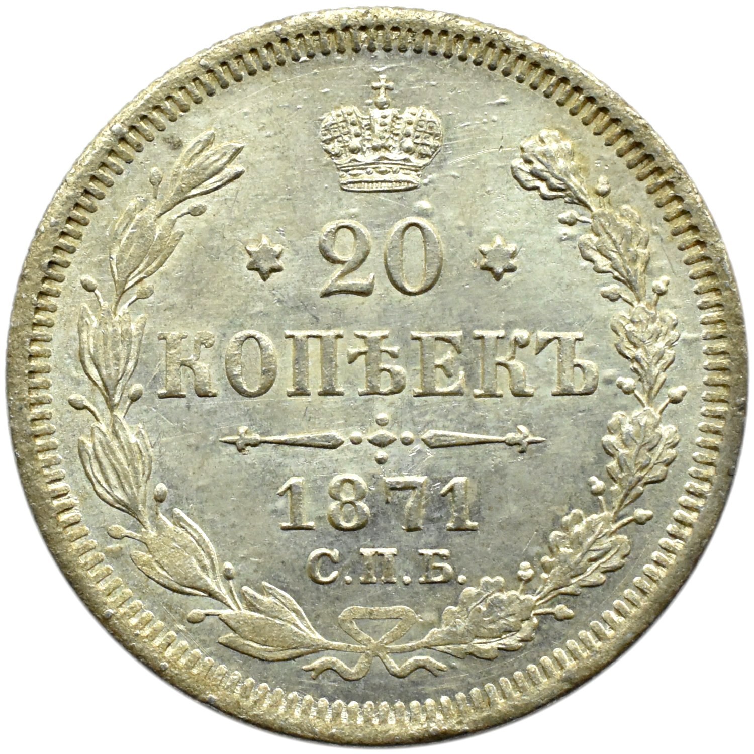 Rosja, Aleksander II (1855-1881), 20 kopiejek 1871 HI, mennica Petersburg