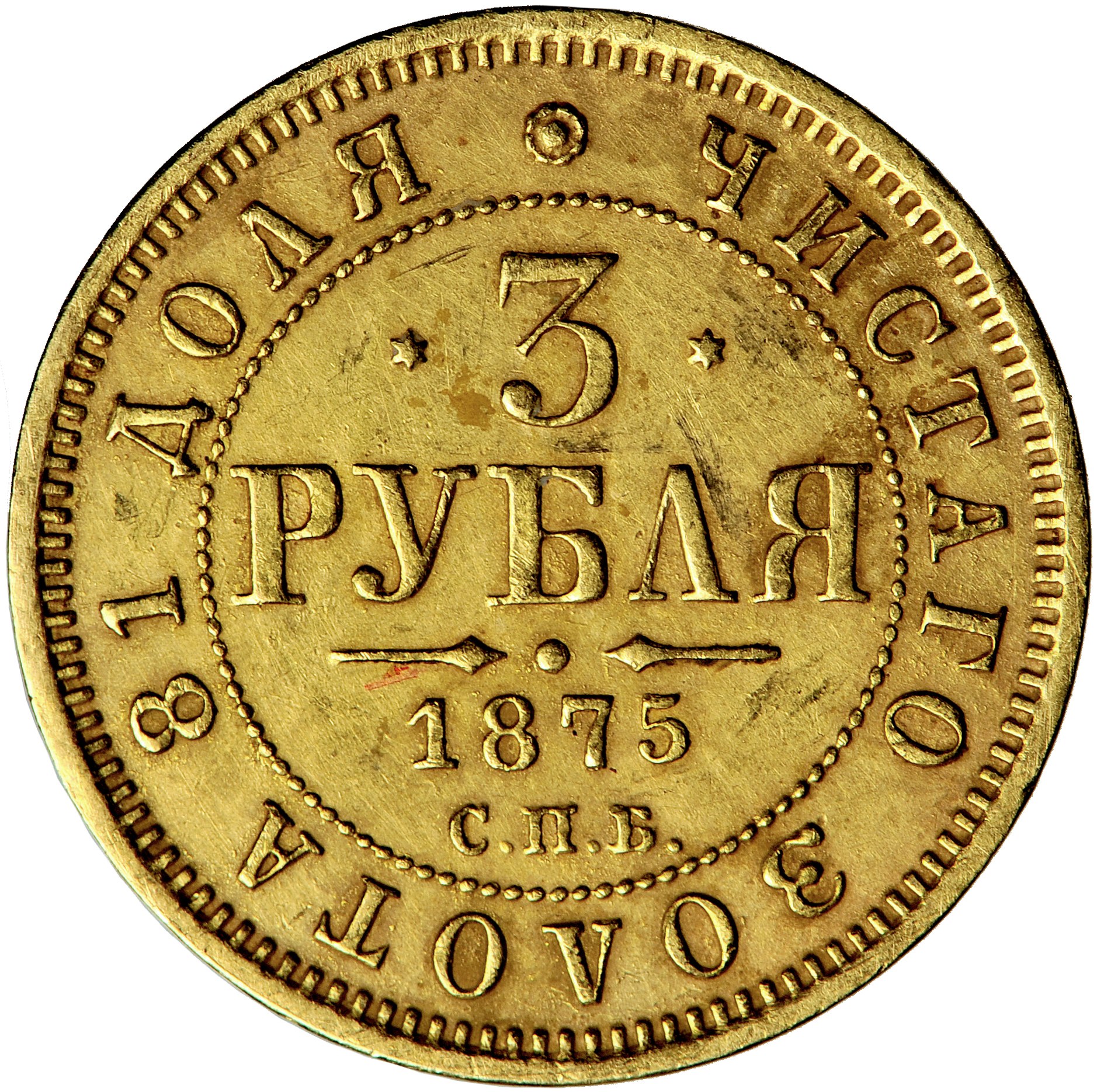 Rosja, Aleksander II, 3 ruble, 1875, men. Petersburg.