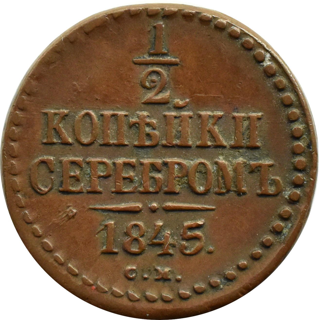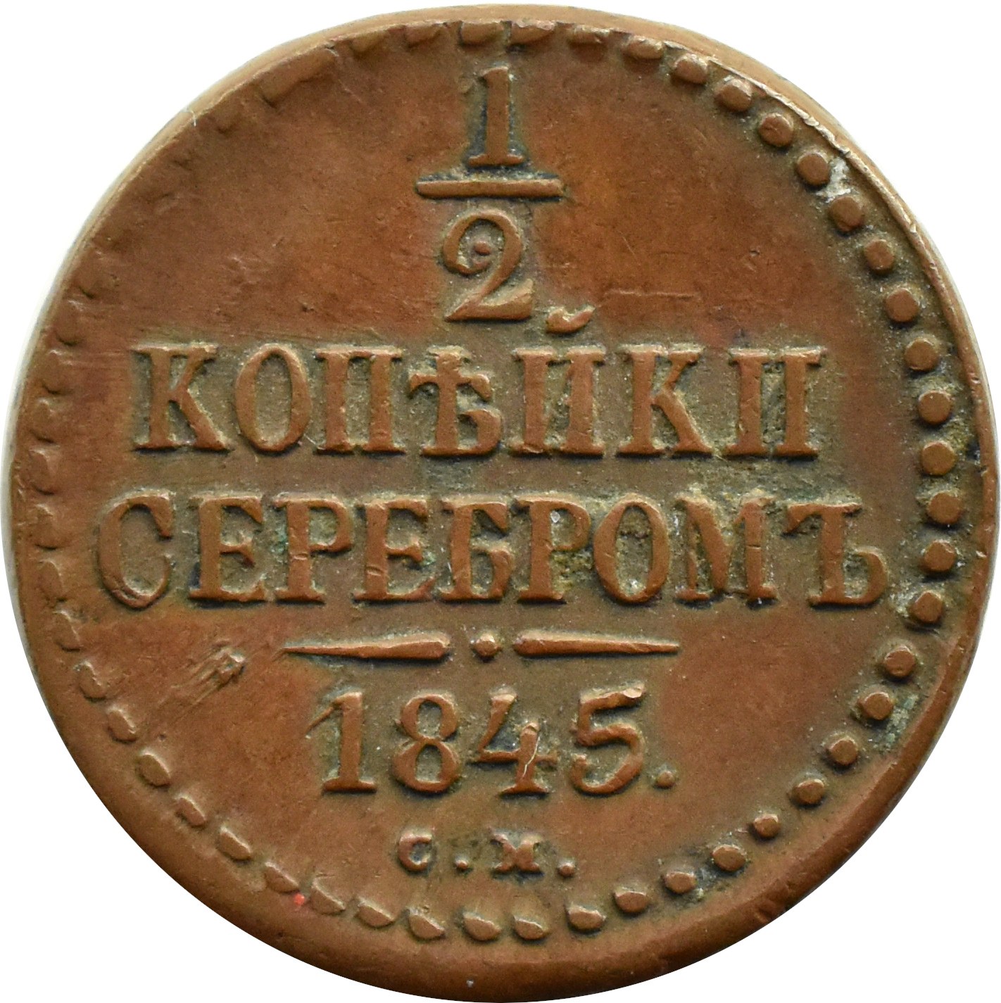 Rosja, Mikołaj I (1825-1855), 1/2 kopiejki 1845 srebrem C.M., mennica Suzun