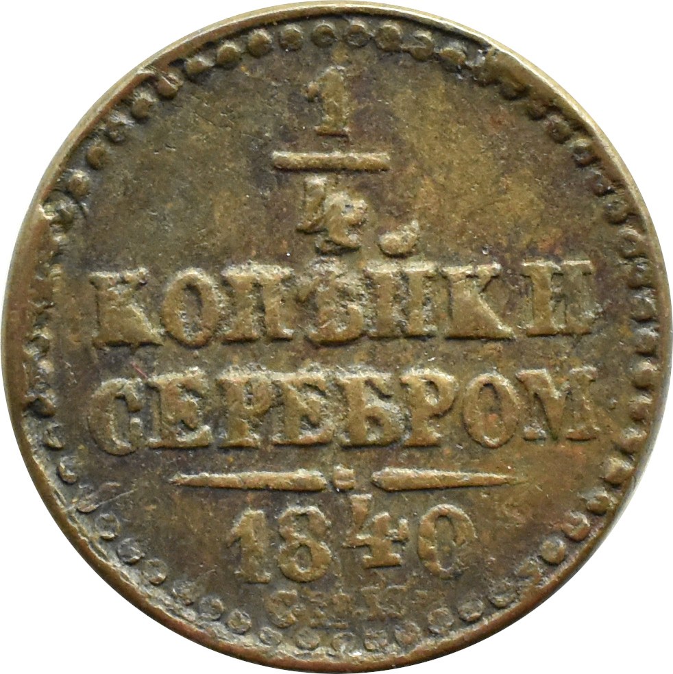 Rosja, Mikołaj I (1825-1855), 1/4 kopiejki srebrem 1840 СПМ, mennica Iżorsk