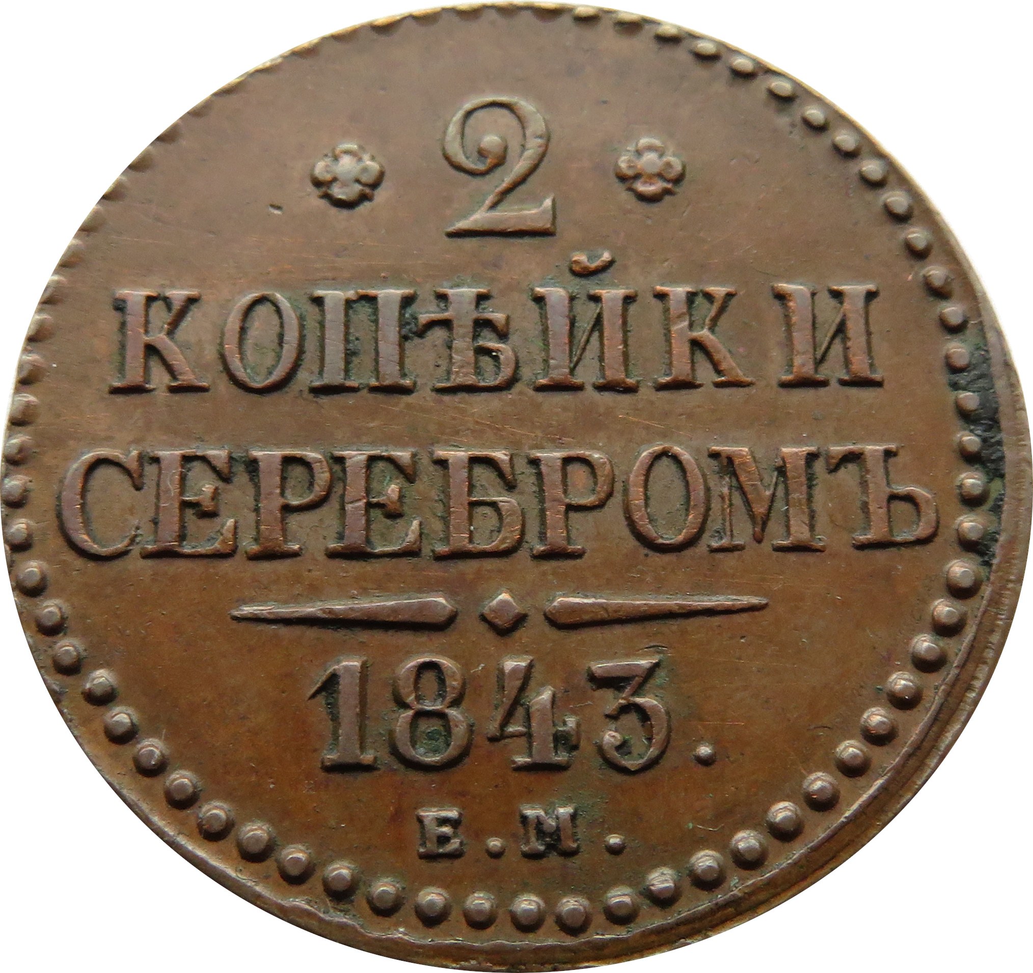 Rosja, Mikołaj I (1825-1855), 2 kopiejki srebrem 1843 E.M., mennica Jekaterinburg