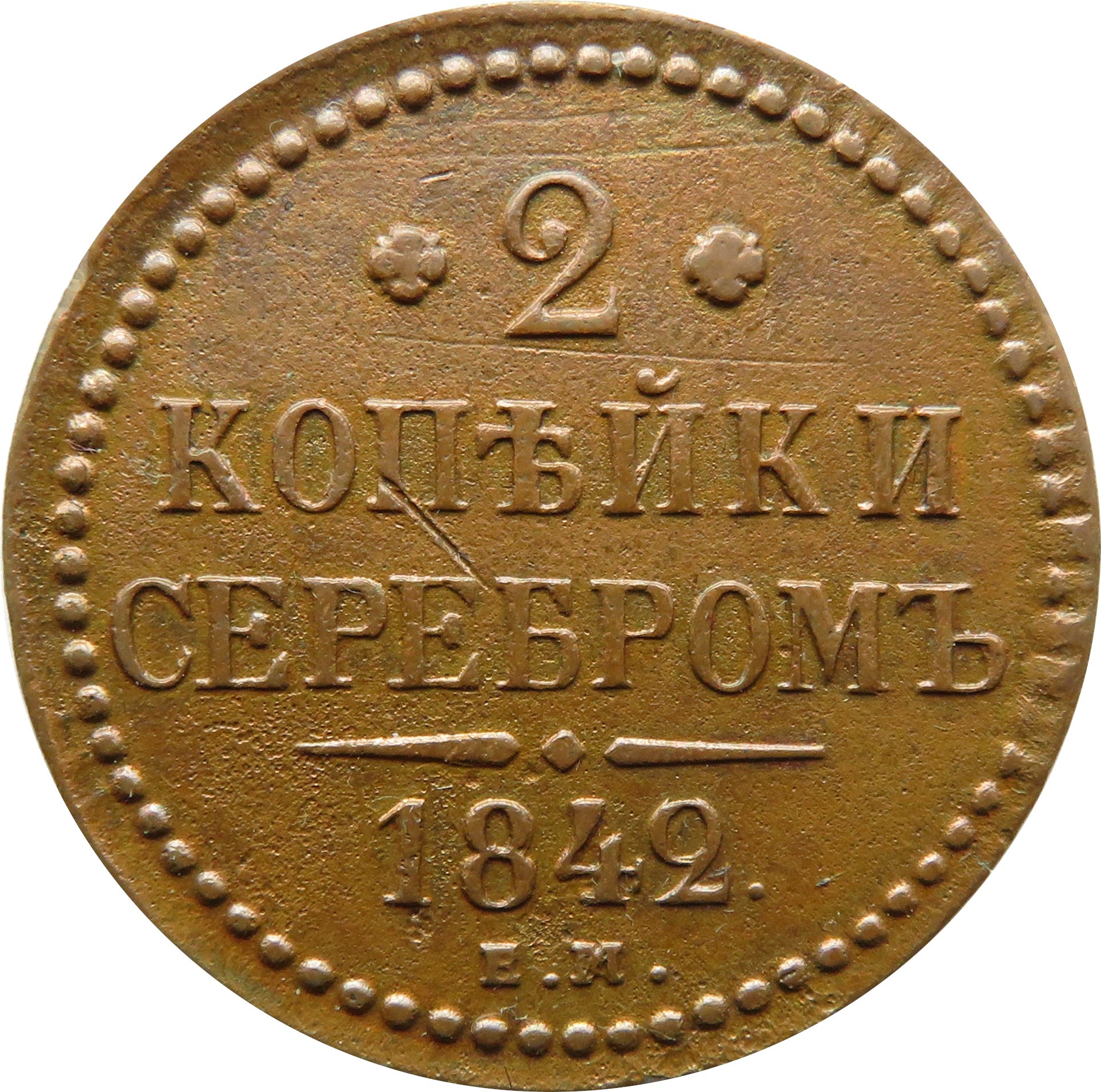 Rosja, Mikołaj I (1825-1855), 2 kopiejki 1842 E.M., mennica Jekaterinburg