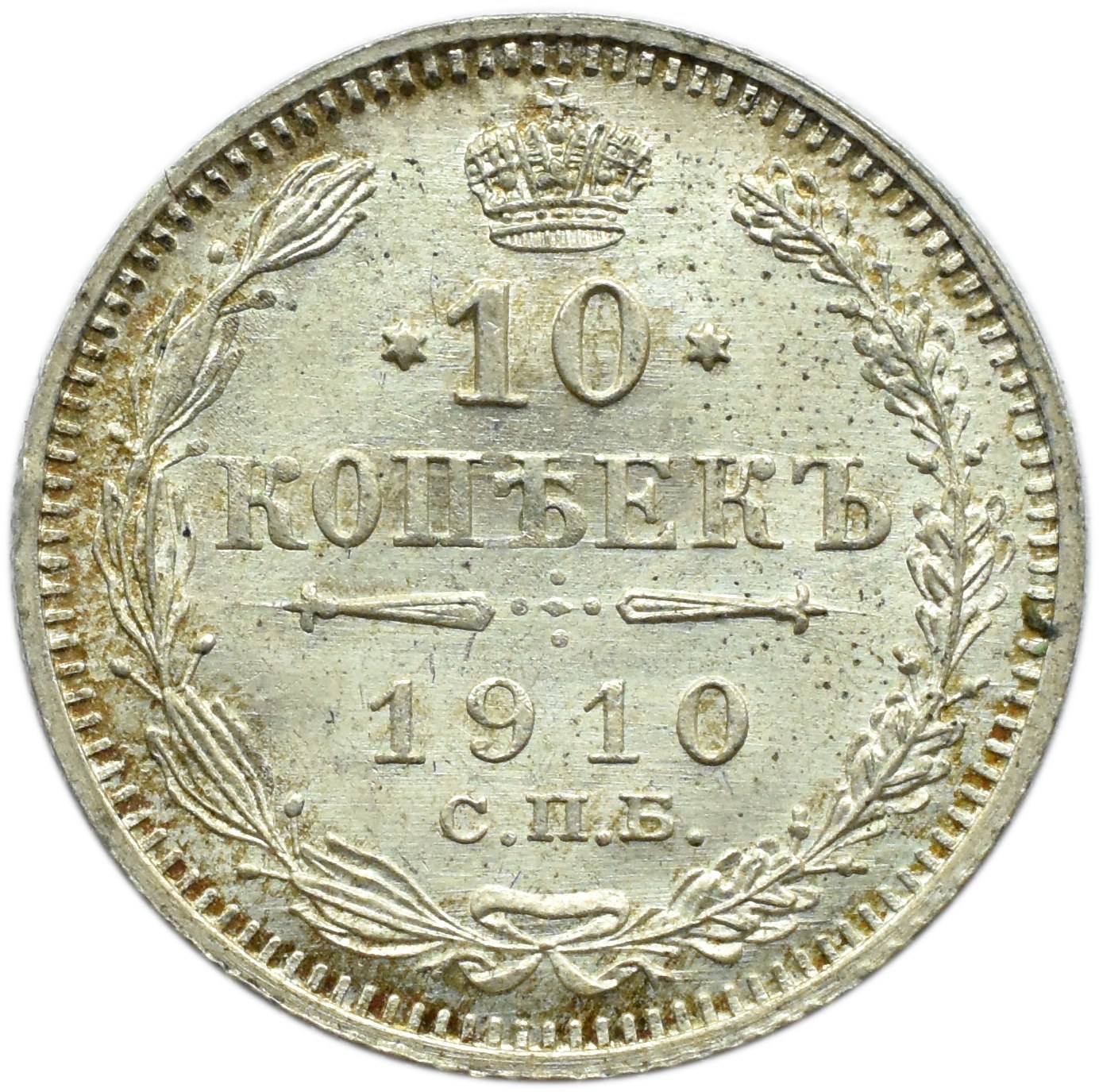 Rosja, Mikołaj II (1894-1917), 10 kopiejek 1910 EB, mennica Petersburg
