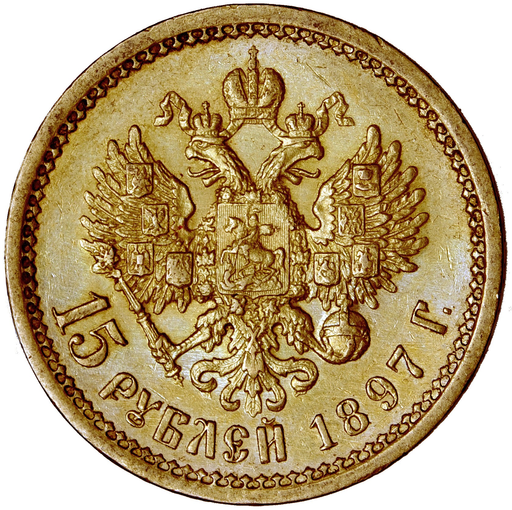 Rosja, Mikołaj II, 15 rubli, 1897, men. Petersburg.
