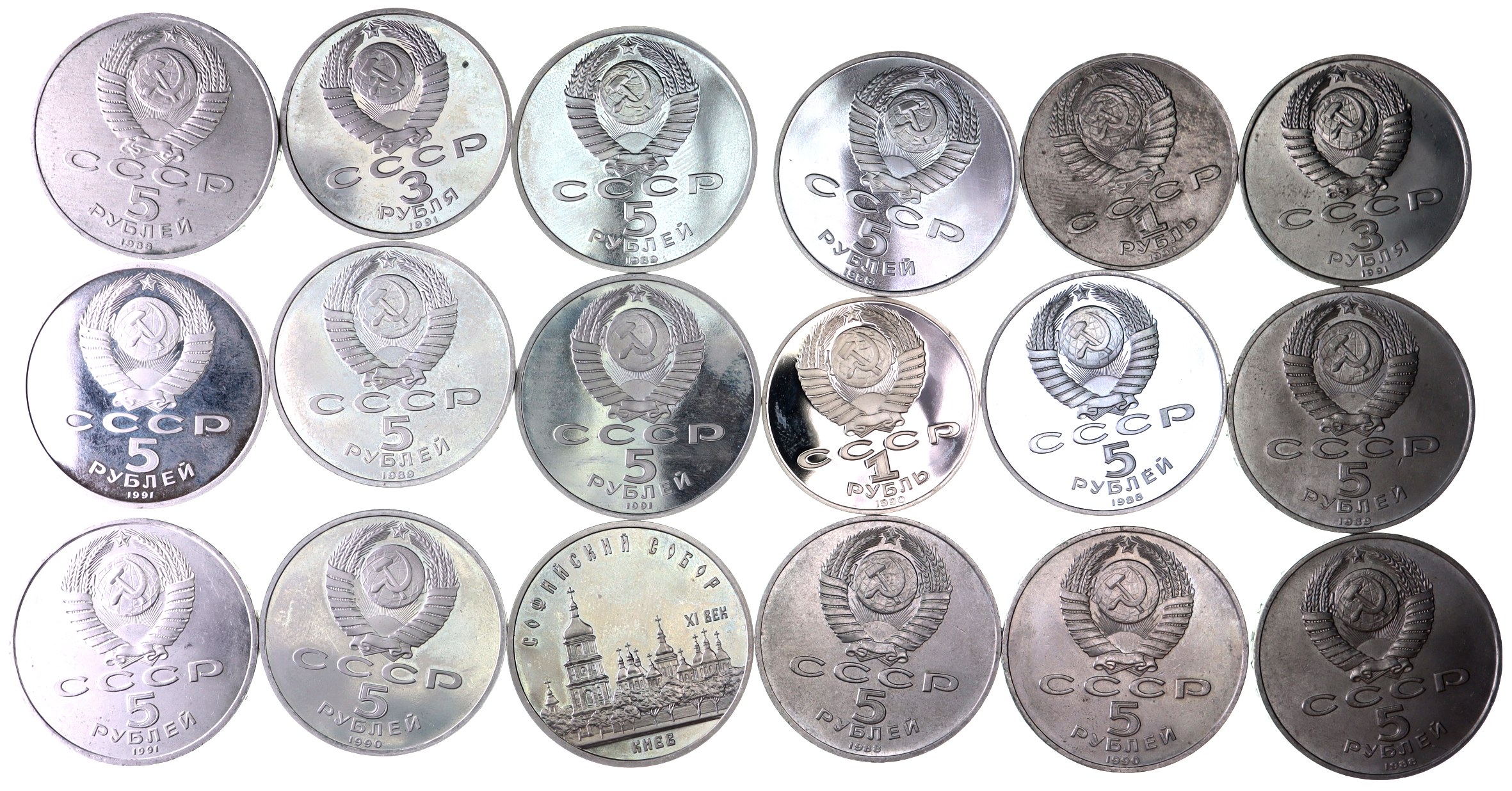 W skład zestawu wchodzą monety miedzioniklowe, głównie o nominale 5 rubli. Kilka wybitych stemplem lustrzanym.