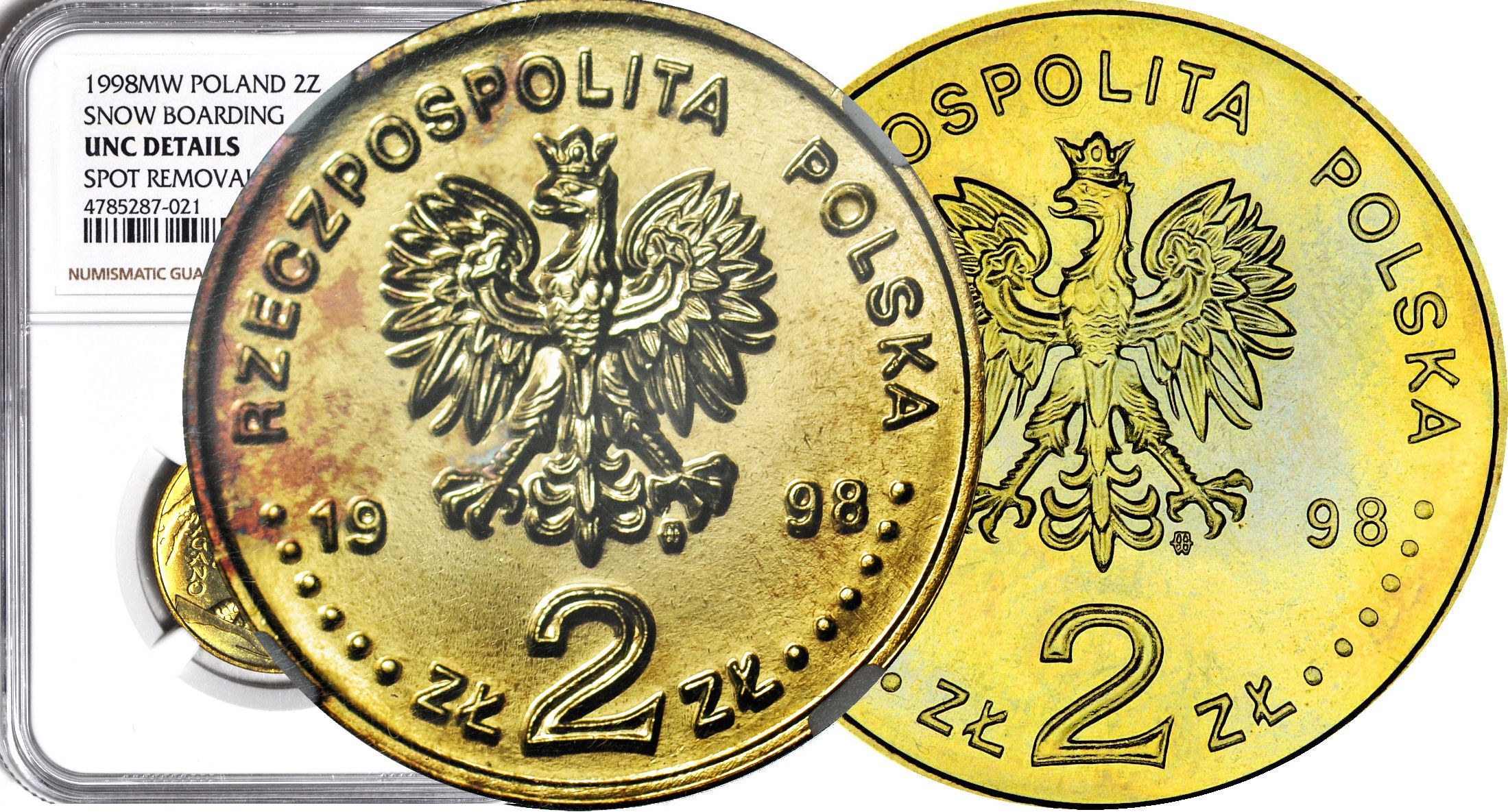 https://onebid.pl/pl/monety-rr-2-zlote-1998-nagano-destrukt-plynacy-stempel-awersu/2006564 . Niespotykane przy monecie okolicznościowej. Menniczy stan zachowania, brak noty numerycznej za plamę. W kolekcjach monet ostatniego wieku, bitych maszynowo w wielkich ilościach, nie ilość monet świadczy o jej jakości kolekcji, a ilość perełek się w niej znajdujących. Nie ma wyższej klasy perełek niż PRÓBY niskonakładowe, oraz jeszcze rzadsze do nich, powstałe przez przypadek ciekawe błędy bicia (przesunięcia, odwrotki). MONETA DO NAJLEPSZYCH KOLEKCJI.