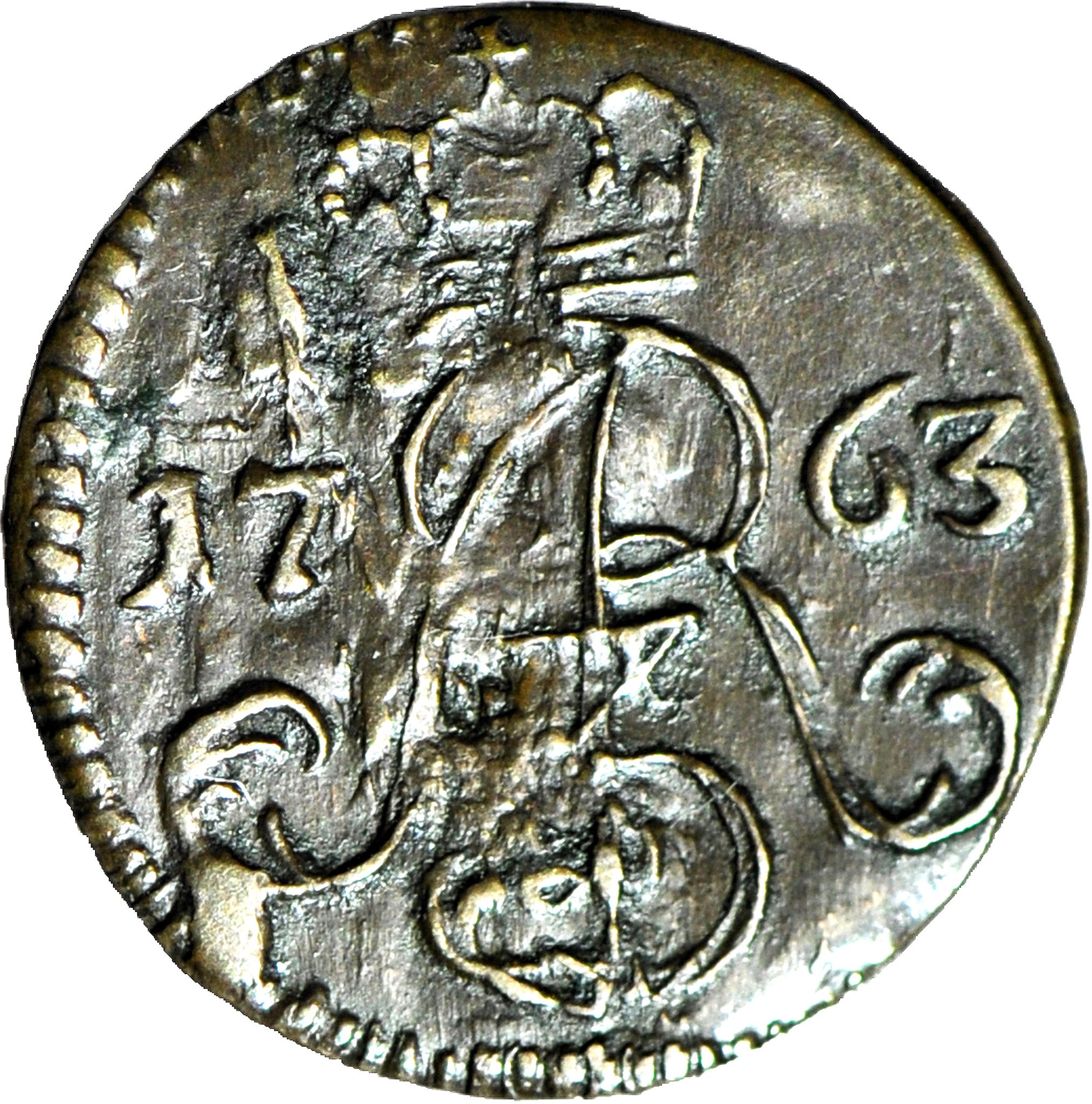 RR-, August III Sas, Szeląg 1763 DB Toruń, błąd CIVTAT zamiast CIVITAT