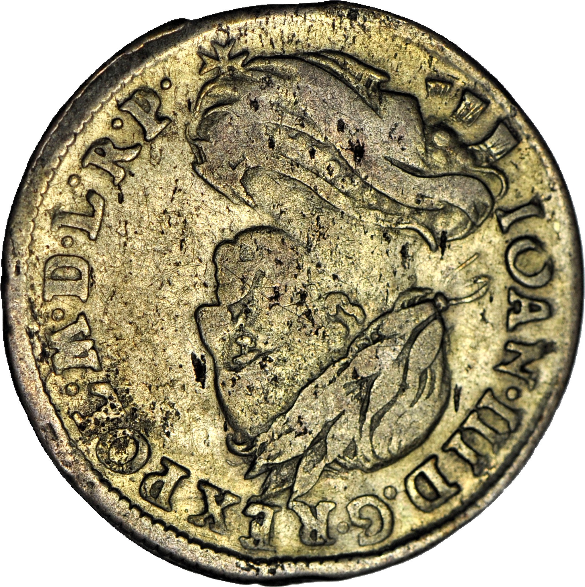 Drugi co do rzadkości (po 1680) wśród ortów Sobieskiego (pomijając fałszerstwa i nadużycia mennicze w niższej próbie srebra - 1685 i 1686r). W katalogu Shatalina doceniony stopniem rzadkości R4. Bardzo rzadka moneta w każdym stanie zachowania. Tu jak na ten typ monety wyjątkowo piękny egzemplarz, ze starej kolekcji, dodatkowo wybity stemplem odwróconym o 180 stopni, co jeszcze dodaje rzadkości. Dotychczas nie pojawił się na Onebid ort Sobieskiego w odwrotce. Moneta do najlepszych zbiorów monet Sobieskiego.