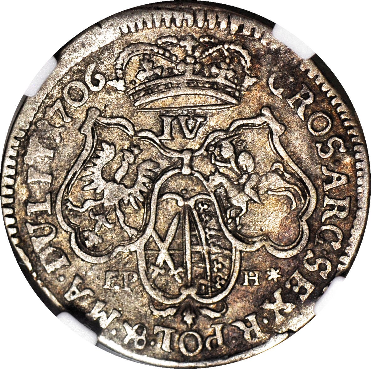 Ekstremalnie rzadka moneta z roku 1706, z mennicy w Moskwie z oznaczeniem EPH*. 30-to krotnie rzadsza od LP (Ludu Płacz). Znanych jest dosłownie kilka egzemplarzy. Ivanauskas opisuje jako bardzo rzadki RRR, z przypisaniem go do mennicy w Moskwie. W Kahnt odnotowuje jedynie egzemplarz ze zbioru Muzeum w Dreźnie. Pomyłka nominału jest dodatkiem, sama moneta jest potwornie rzadka i poszukiwana. Wybita w Moskwie, gdy król walczył o odzyskanie władzy. Najwyższej klasy rarytas do najlepszych kolekcji.