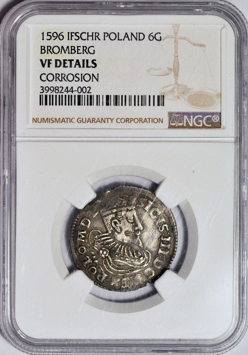 Wielkiej rzadkości szóstak bity w mennicy bydgoskiej w 1596 roku.