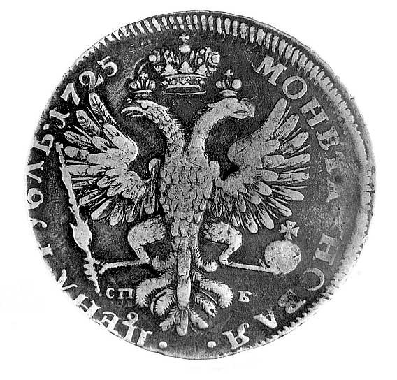 rubel 1725, Petersburg, Aw: Popiersie na wprost z głową...
