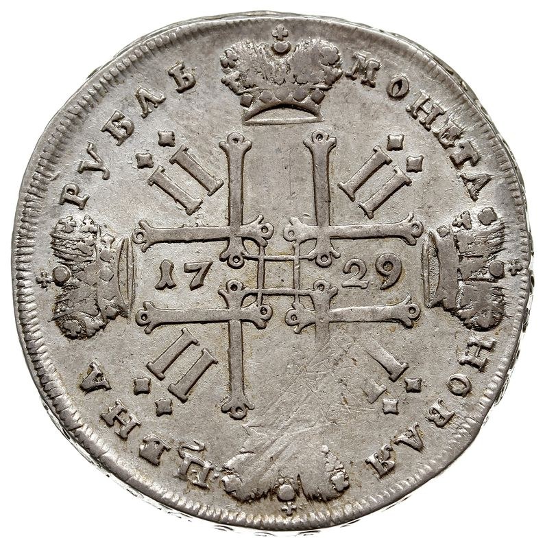 Piotr II 1727-1730, rubel 1729, Moskwa, portret typu Fox-face, srebro 27.44 g, Bitkin 114, Diakov 27, GM 9.12, Petrov 1 (3 ruble), Yusupov 30