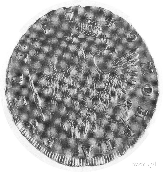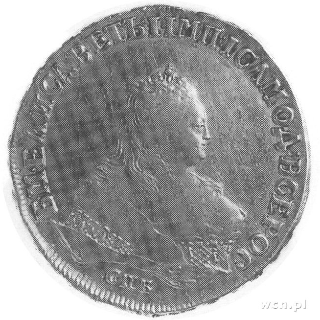 rubel 1749, Petersburg, Aw: Popiersie i napis w otoku, ...