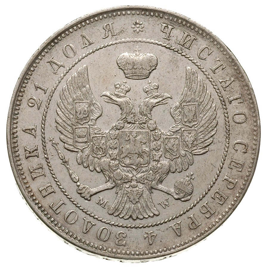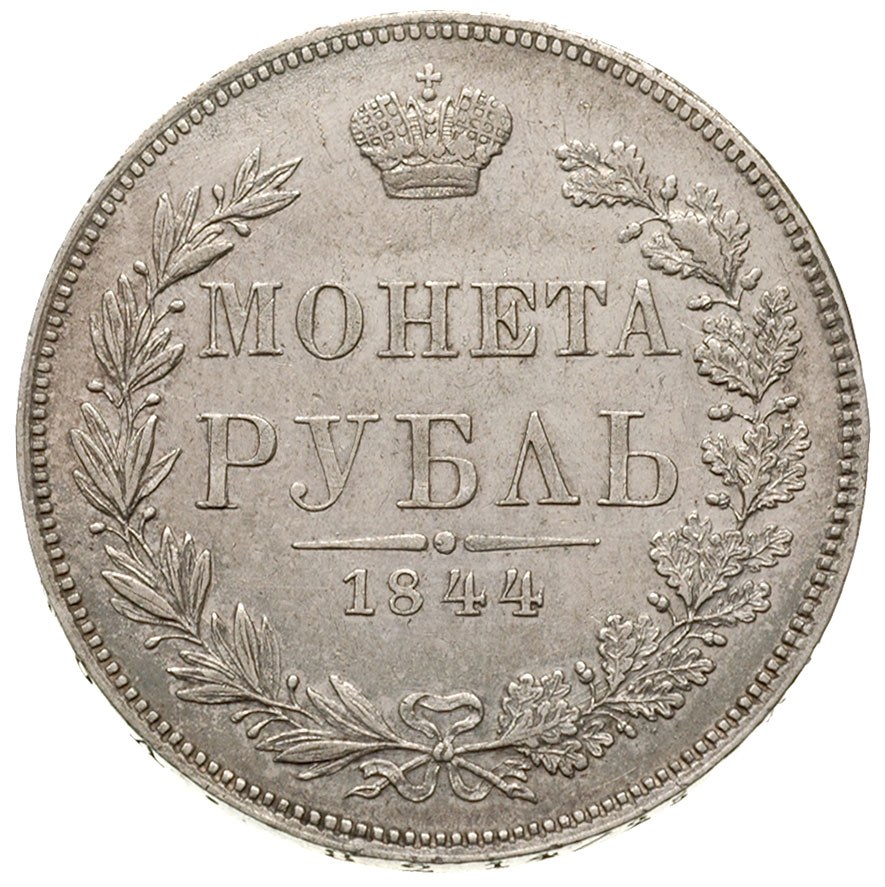 Monety zaboru rosyjskiego: Mikołaj I 1825-1855 i Aleksander II 1855-1881, rubel 1844, Warszawa, Plage 433, Bitkin 423