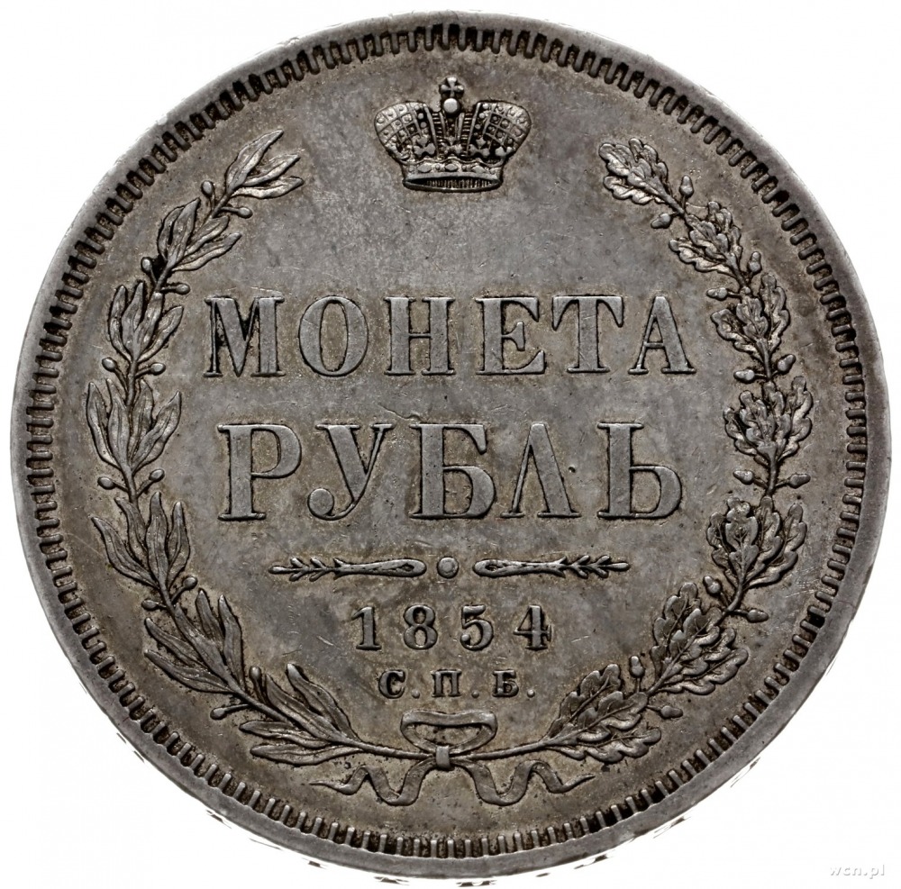 rubel 1854 СПБ HI, Petersburg; w wieńcu 7 gałązek lauro...