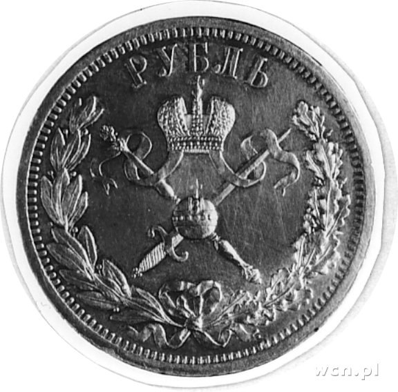 Mikołaj II 1894-1917, rubel koronacyjny 1896, Aw: Głowa w lewo, w otoku napis, Rw: Insygnia koronacyjne w wieńcu, Uzdenikow 4127