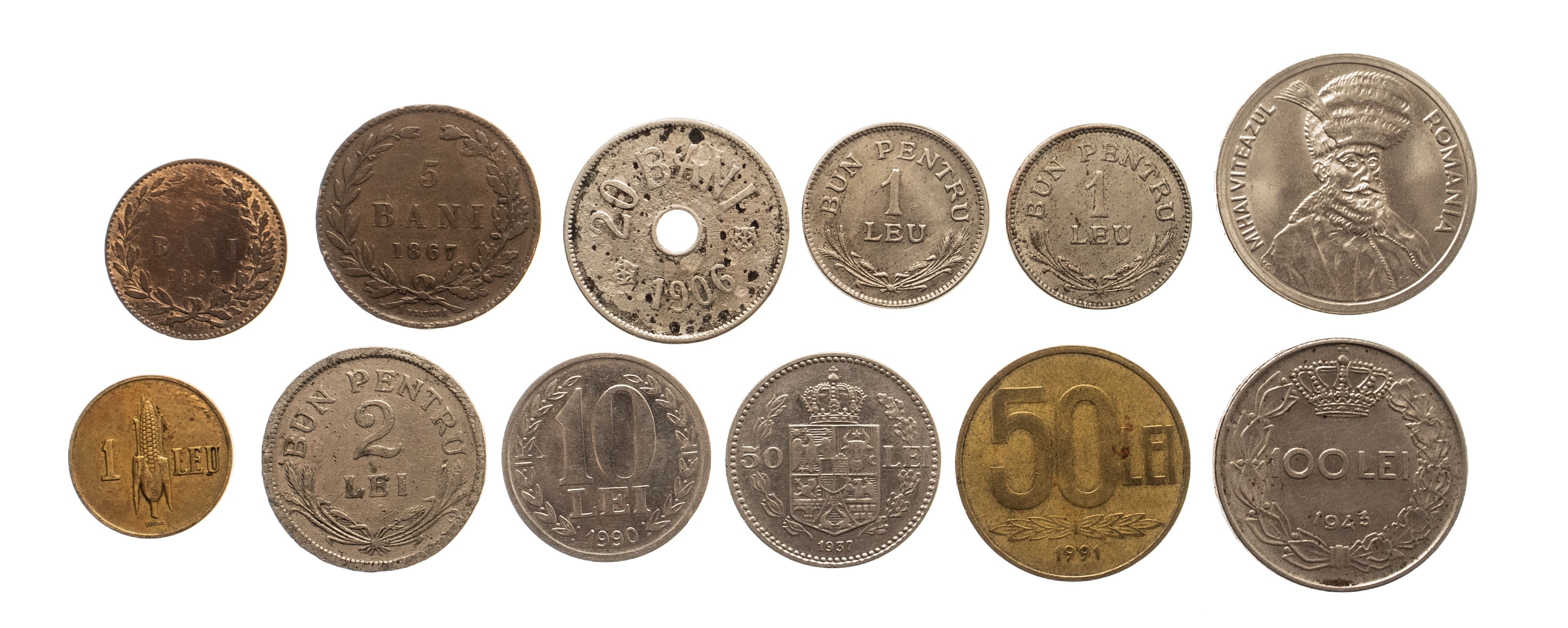 Rumunia, zestaw monet obiegowych z lat 1867-1994 (12 szt.).