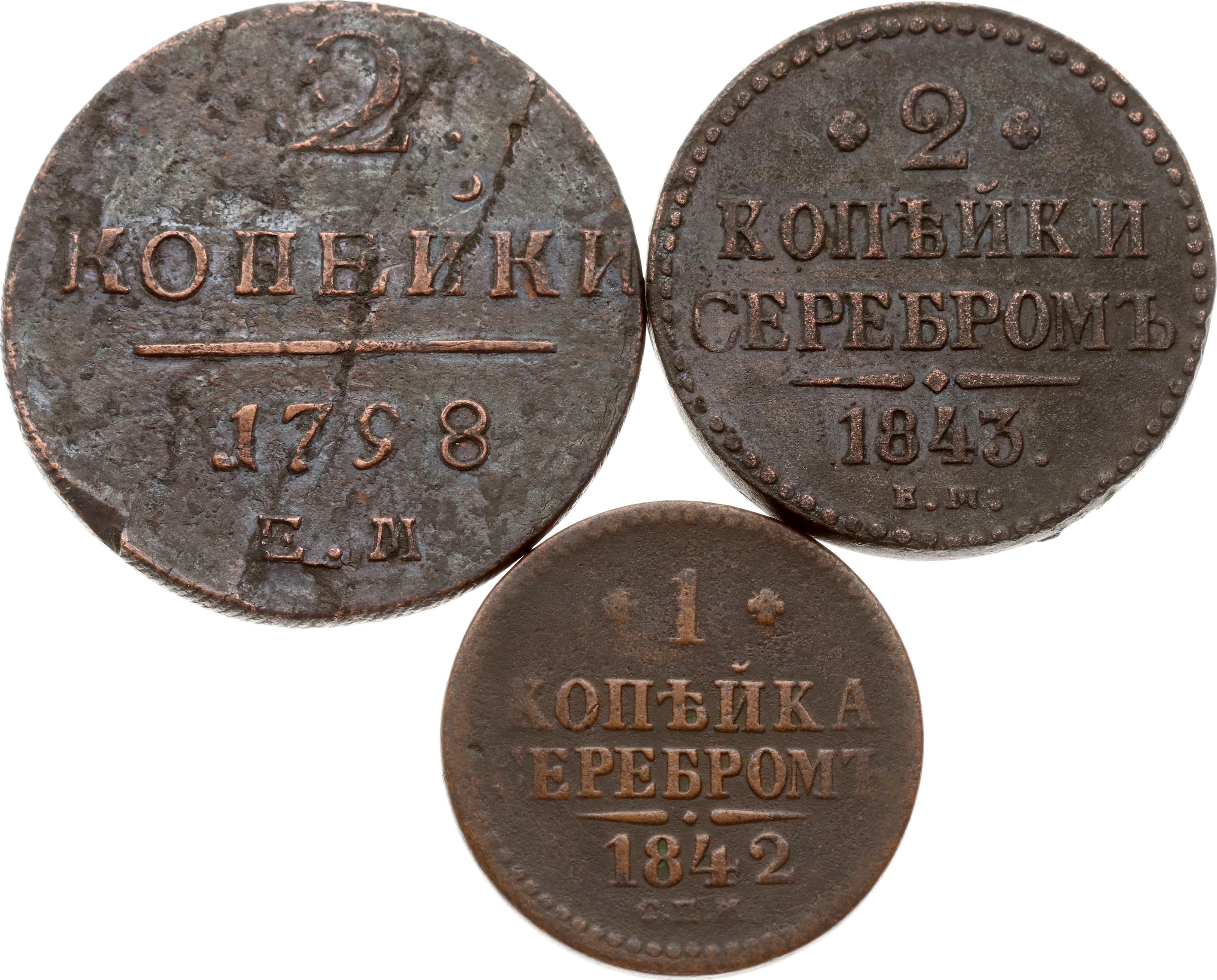 Russia. 1 & 2 Kopecks 1798-1843. 2 kopecks 1798 ??, Kopeck 1842 ???, 2 Kopecks 1843 ??. Copper, total weight 52.34 g. Bitkin 114, 829, 554. Lot of 3 coins.