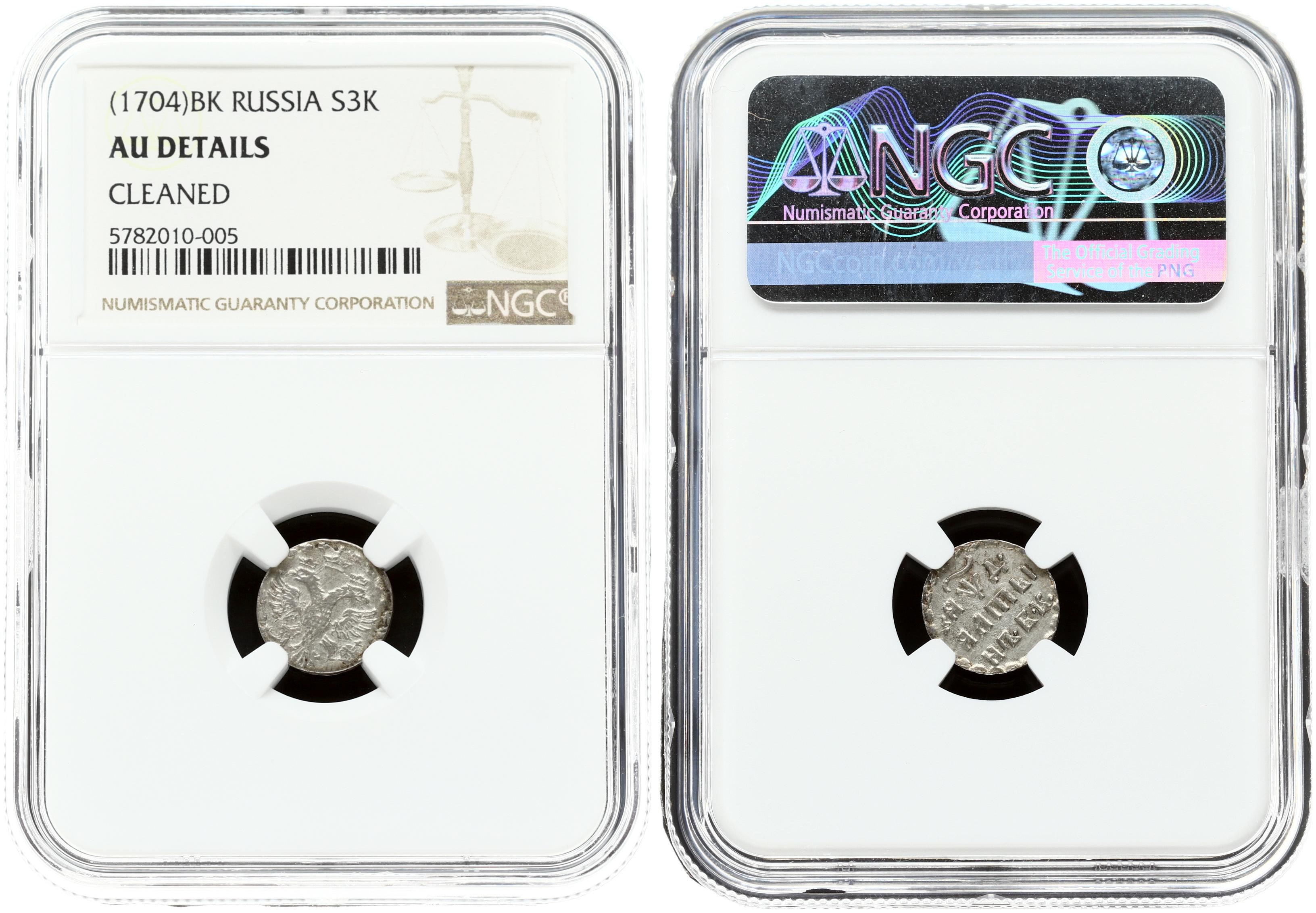 Russia 1 Altyn (1704) БК 'ЯWД'. Peter I (1699-1725). Obverse: Eagle. Reverse: Denomination ALTYN and date. Silver. Edge plain. Bitkin 1156. NGC AU Details