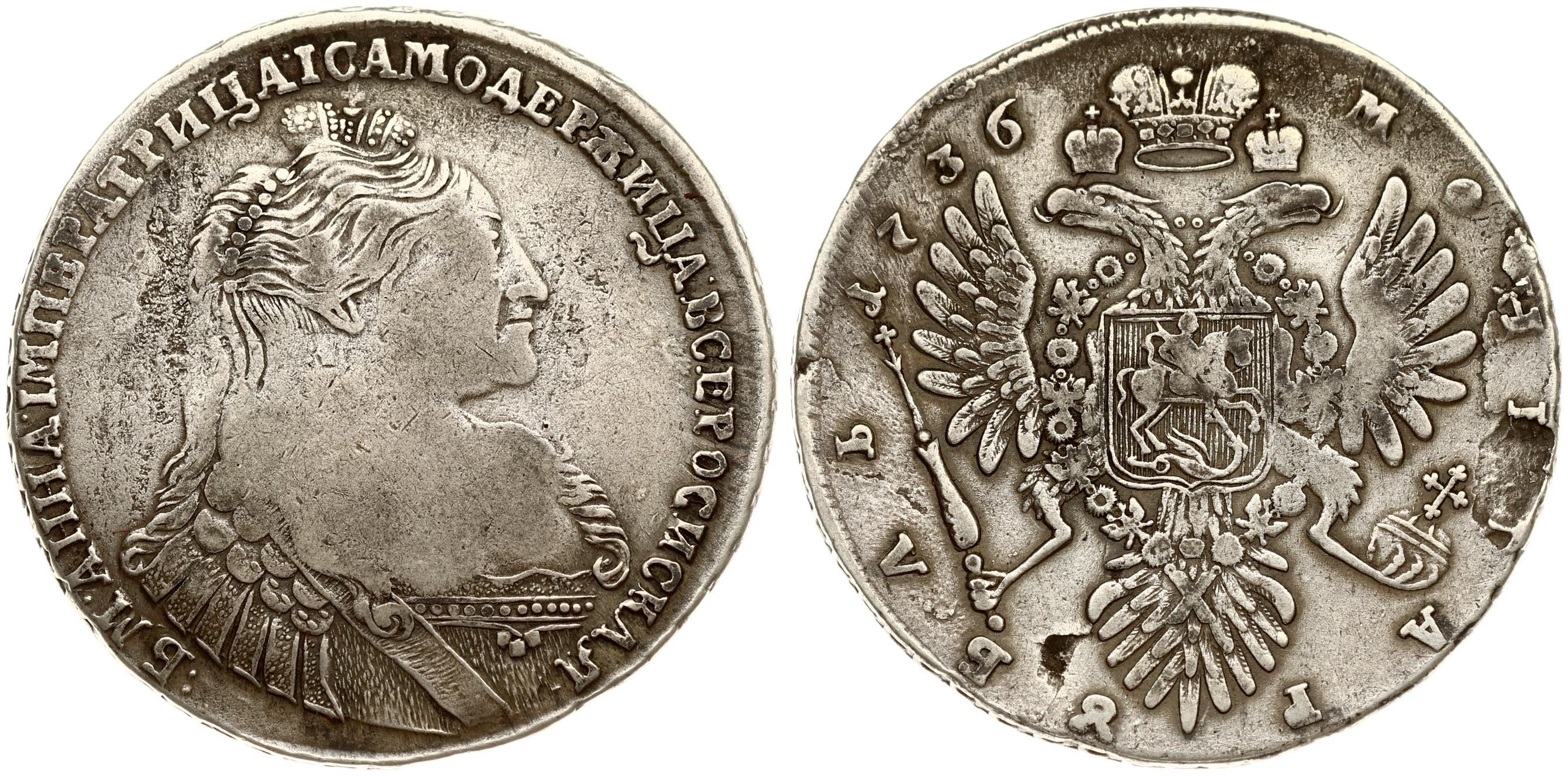 Russia 1 Rouble 1736 Anna Ioannovna (1730-1740). Averse: Large bust right. Reverse: Crown above crowned double...