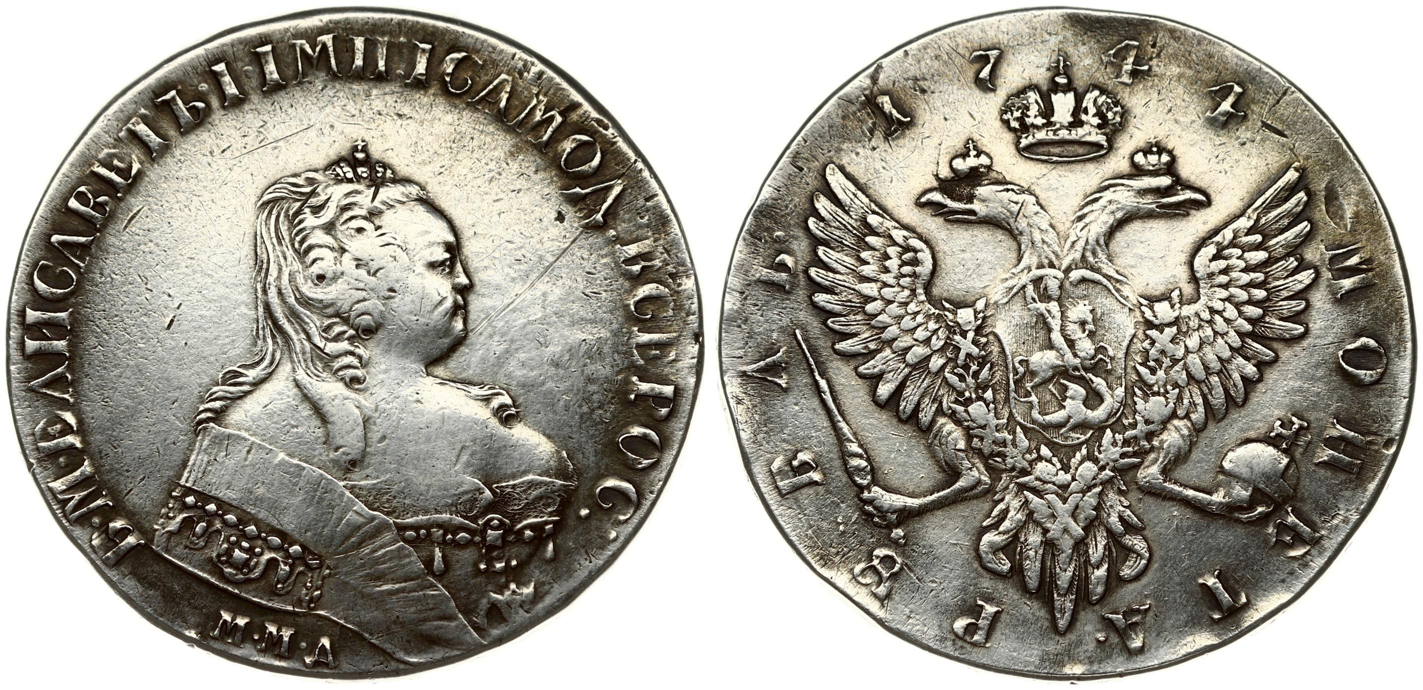Russia 1 Rouble 1744 ММД Moscow. Elizabeth (1741-1762). Averse: Crowned bust right. Reverse: Crown above crowned double...