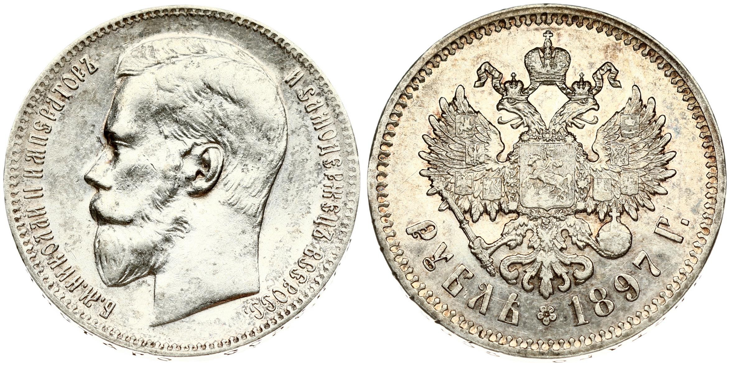 Russia 1 Rouble 1897 (**) Brussels. Nicholas II (1894-1917). Averse: Head left. Reverse: Crowned double...