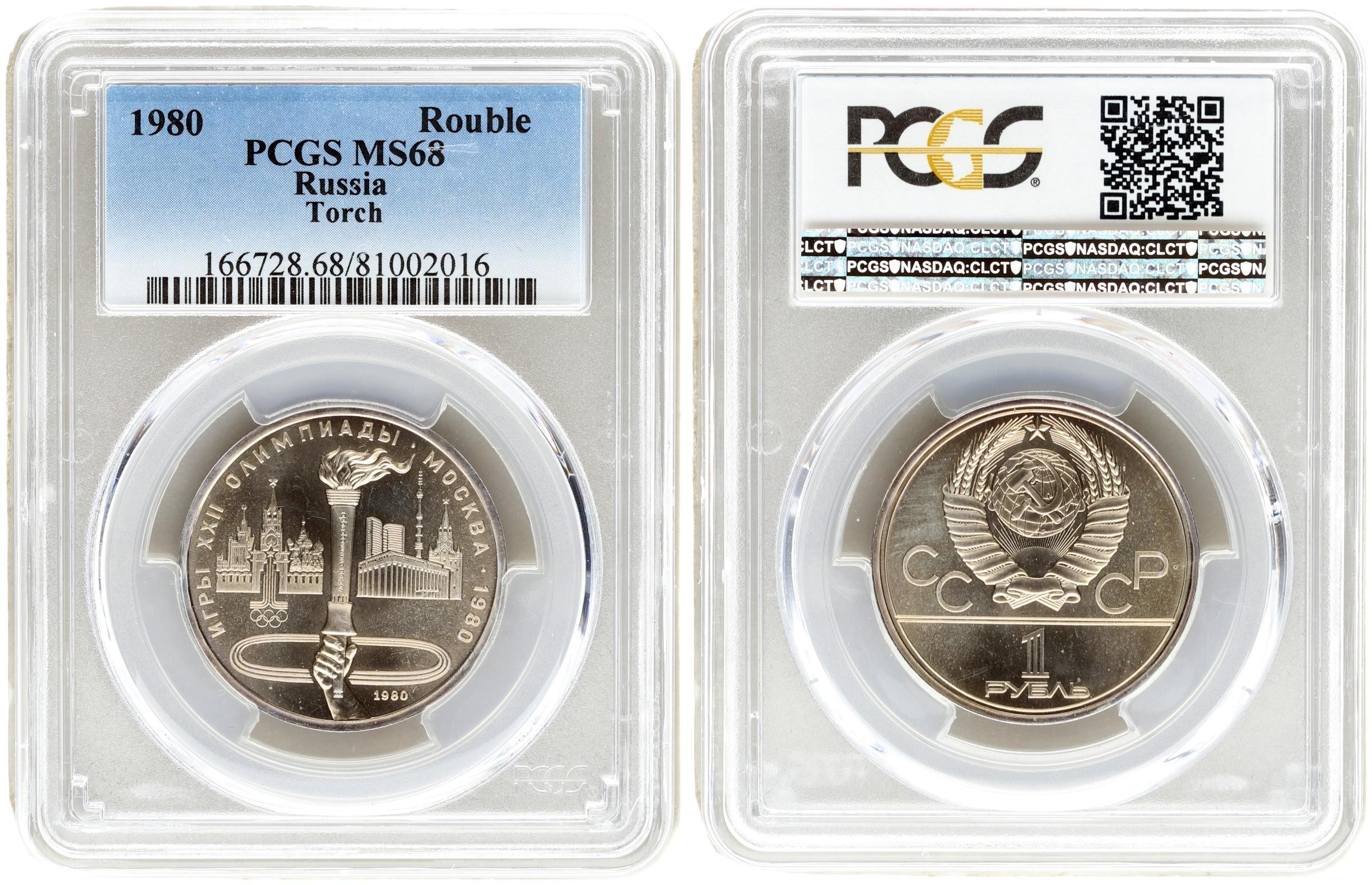 Russia 1 Rouble 1980. 1980 Summer Olympics. Moscow. Torch. PCGS MS 68