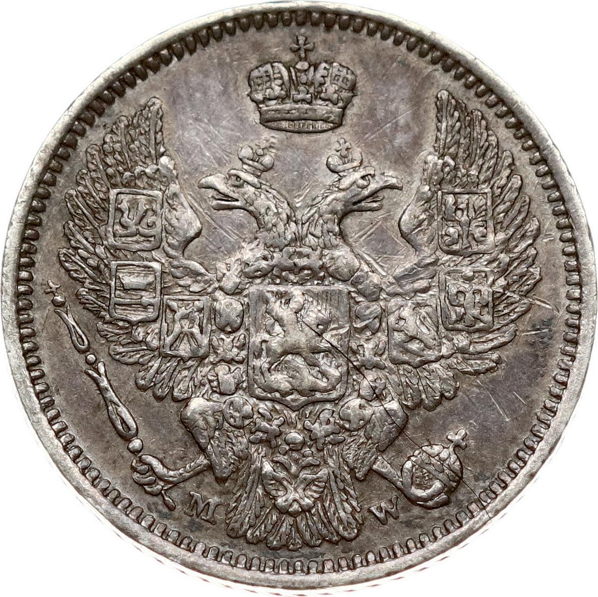 Russia. Nicholas I (1825-1855). 10 Kopecks 1855 MW, Warsaw. Silver 2.04 g. Small scratches. Bitkin 444 (R). Patina.