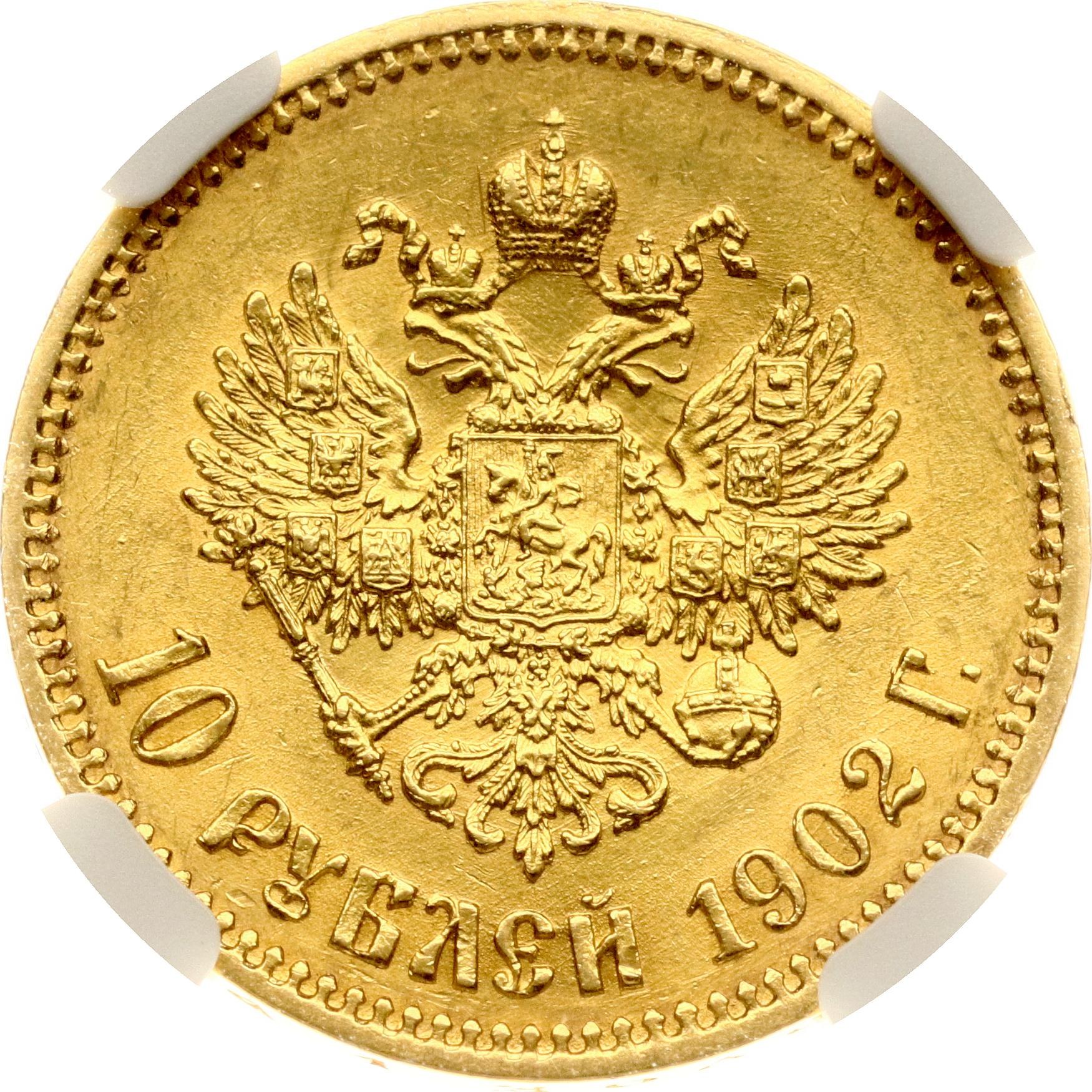 Russia. Nicholas II (1894-1917). 10 Roubles 1902 АР, St. Petersburg. Gold. Bitkin 10. NGC MS 62.