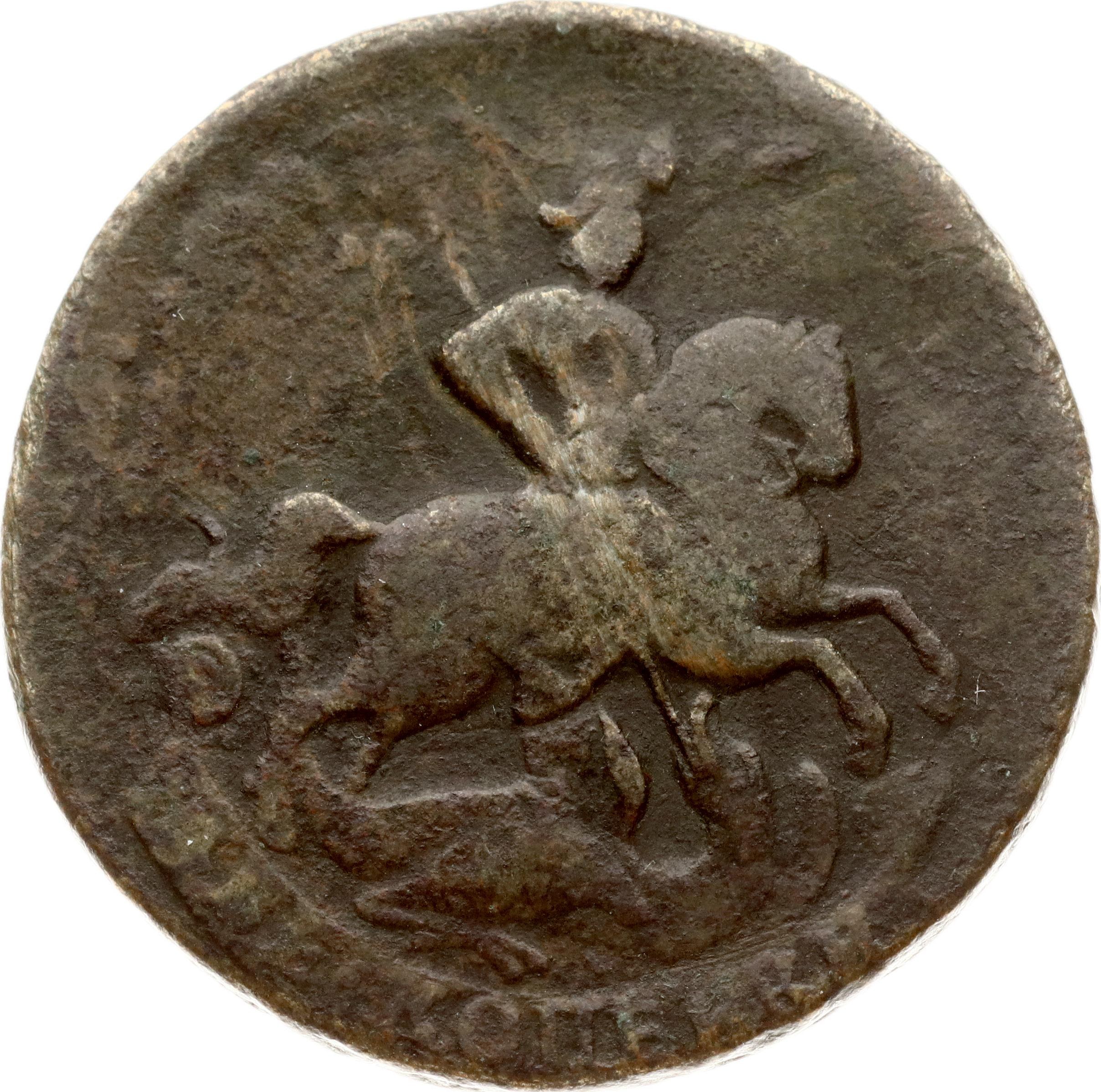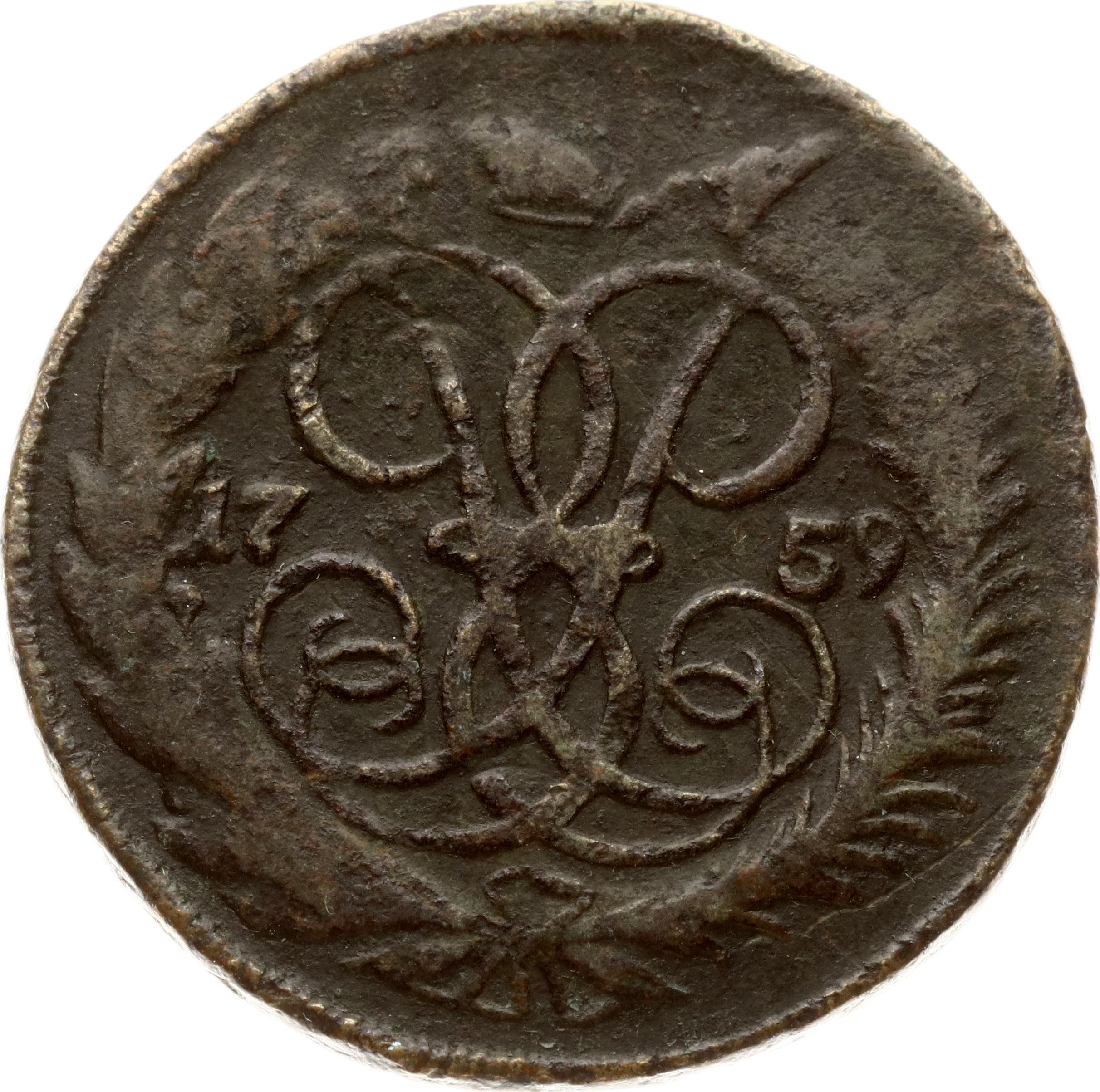 Russia. Elizabeth (1741-1762). 2 Kopecks 1759, 'Nominal under St. George'. Overstruck on 1 Kopeck 1755-1757. Copper 17.21 g. Edge netlike. Bitkin 393.