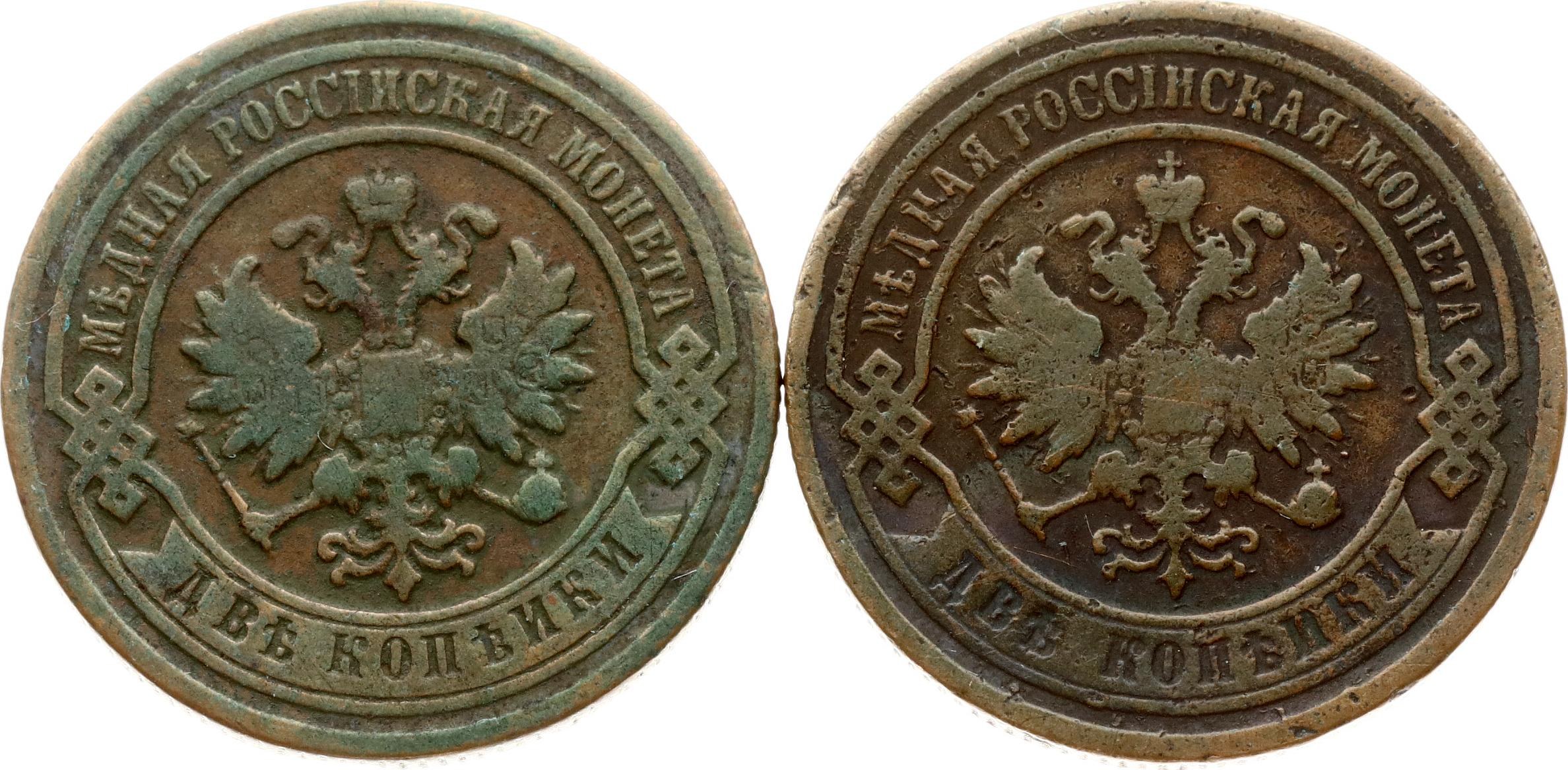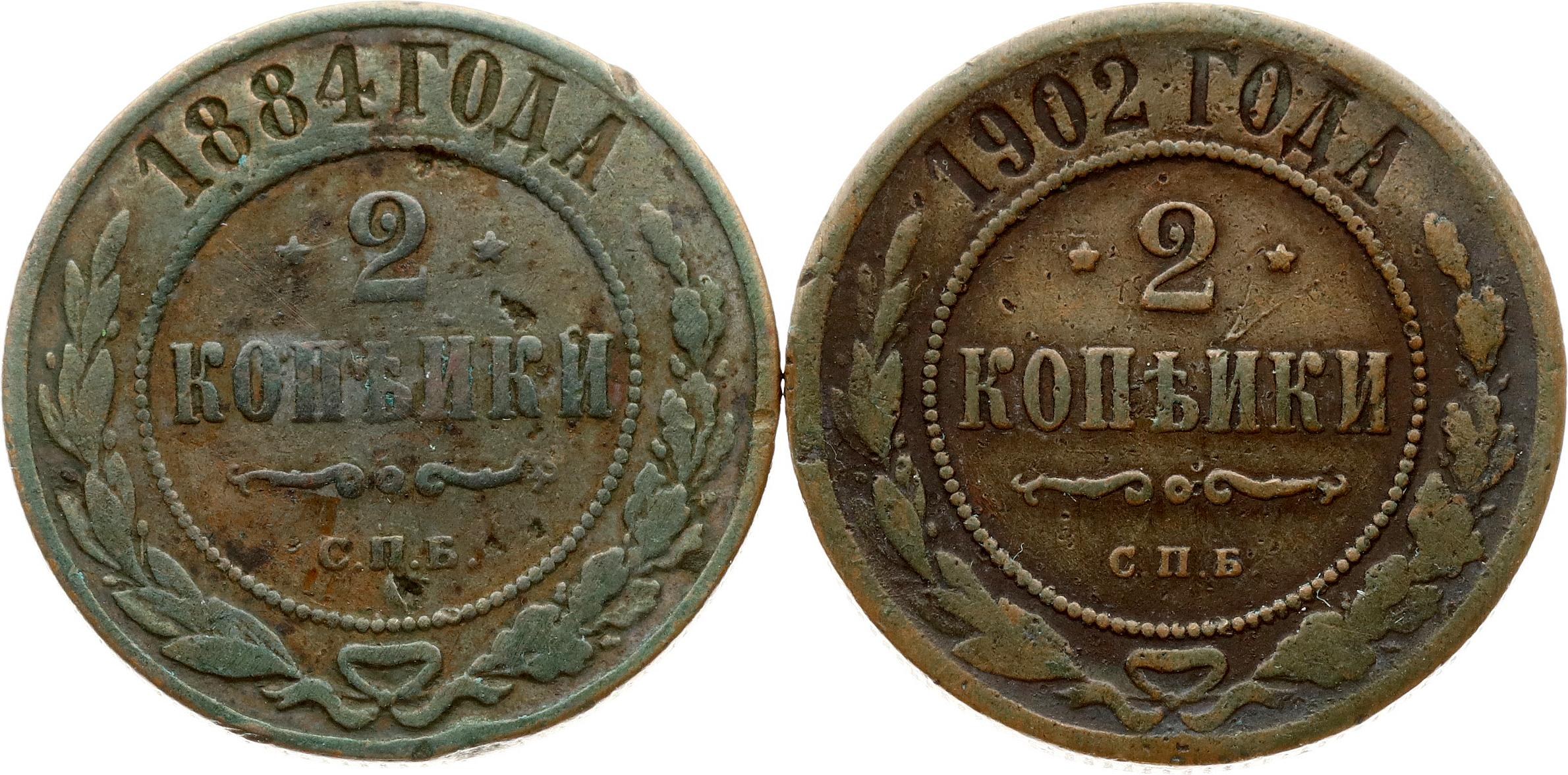 Russia 2 Kopecks 1884 & 1902 СПБ Lot of 2 coins