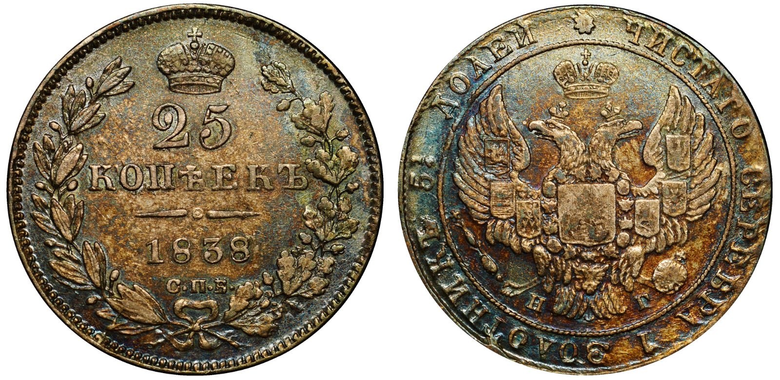 Russia 25 Kopeks 1838/7 СПБ НГ