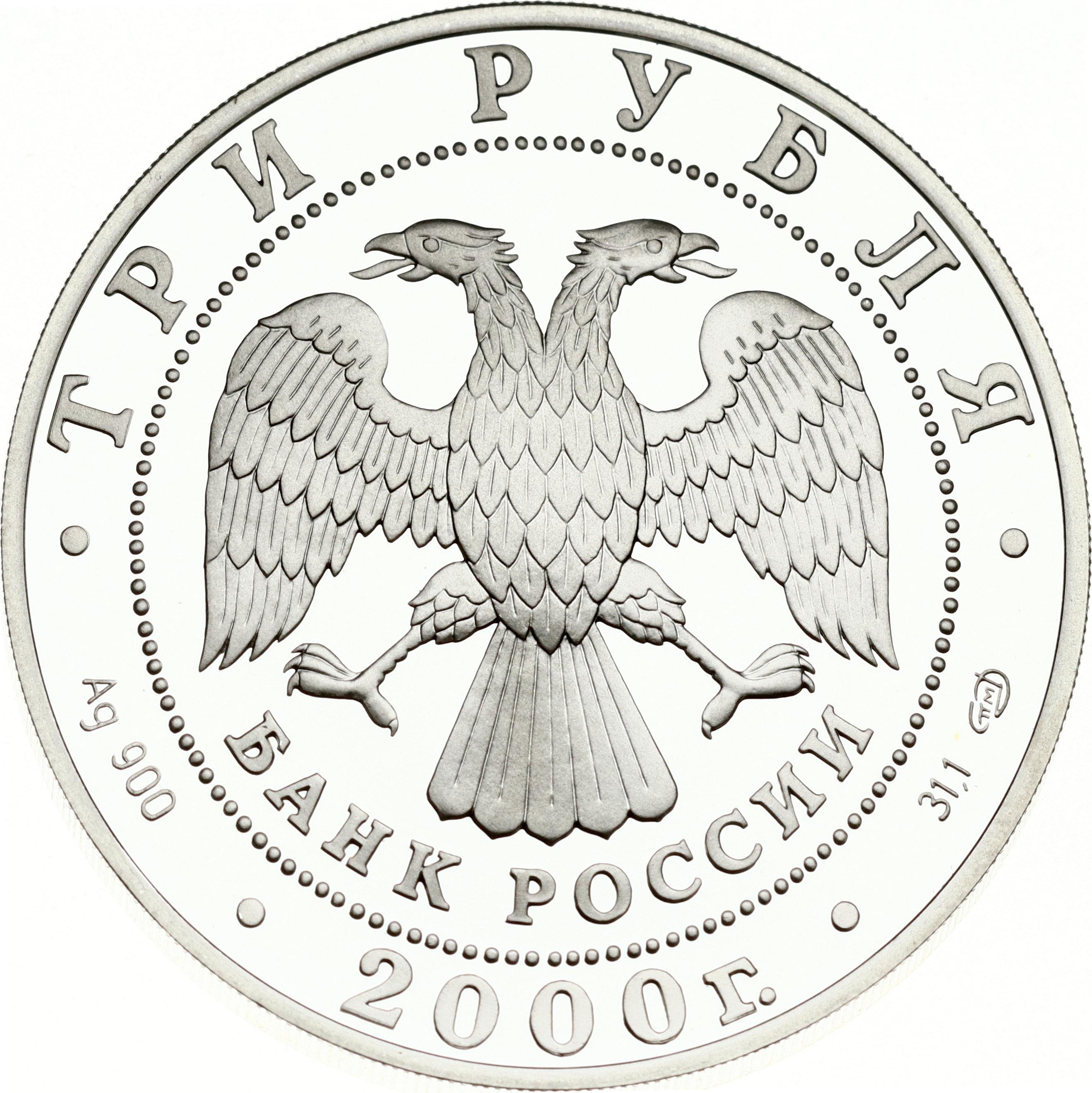 Russia. 3 Roubles 2000 СПМД, Tsarskoye Selo. Architectural Monuments of Russia. Mintage 5 000 pcs. Silver .900, 34.78 g. Y 707.