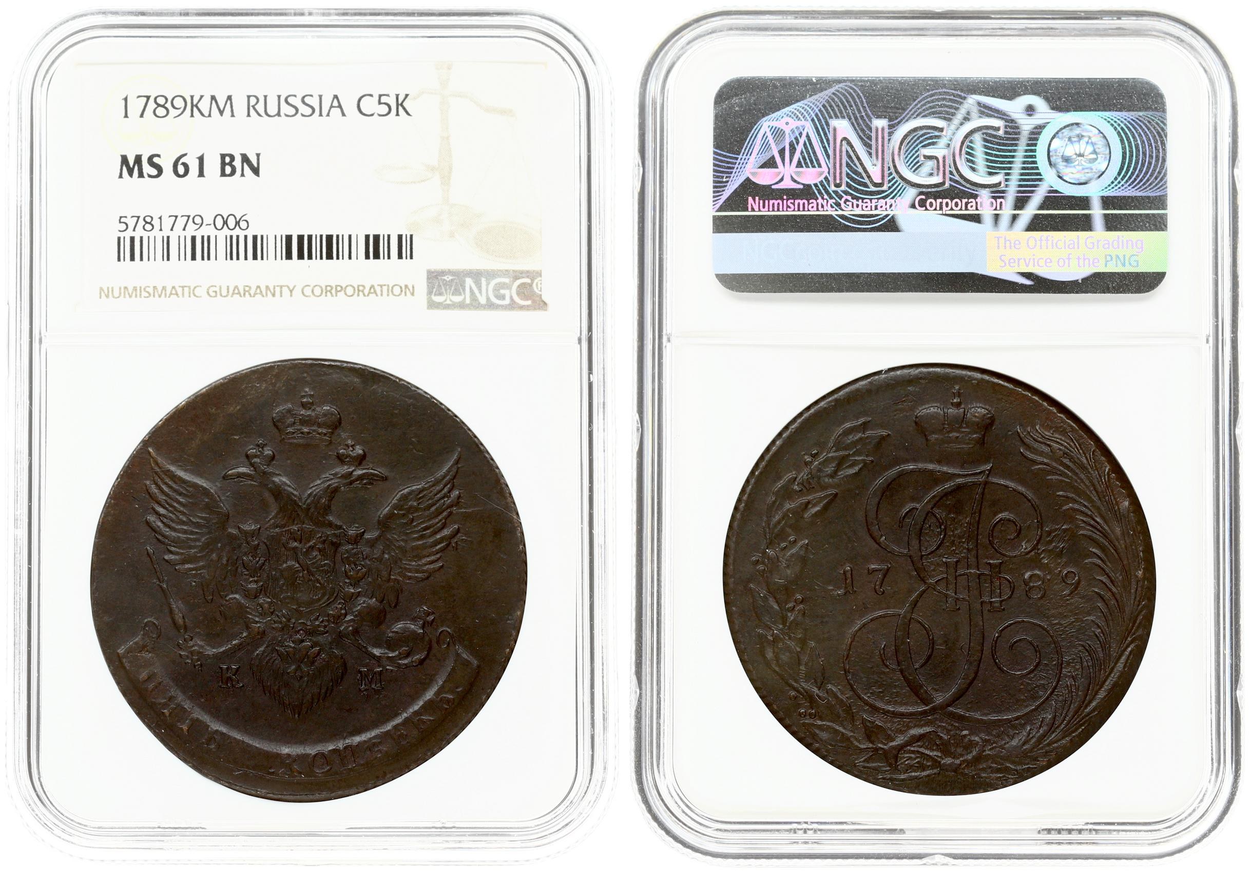 Russia 5 Kopecks 1789 KM (R) NGC MS 61 BN