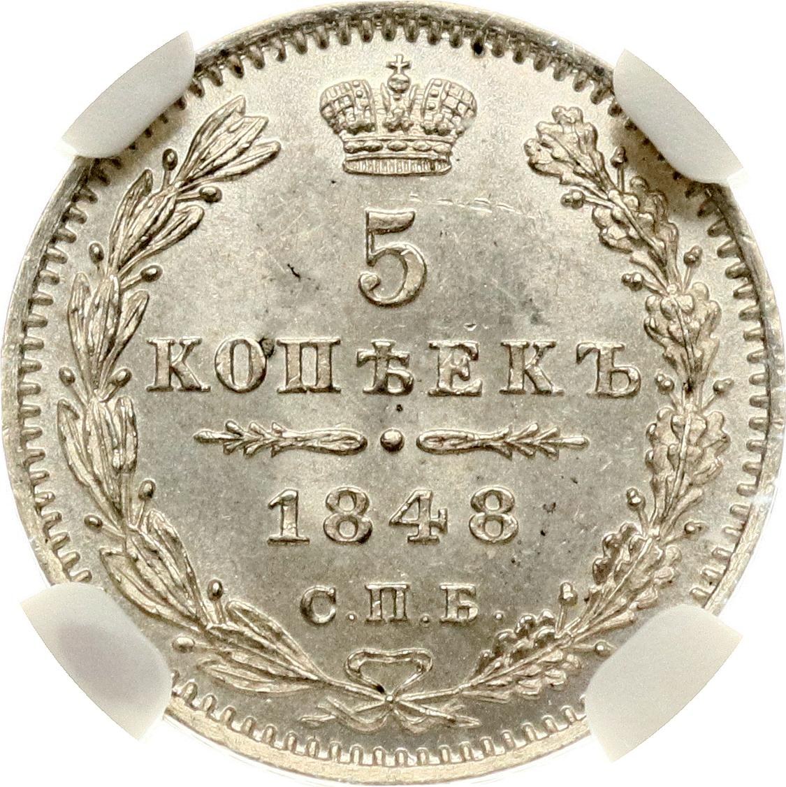 Russia 5 Kopecks 1848 СПБ-HI NGC MS 64+