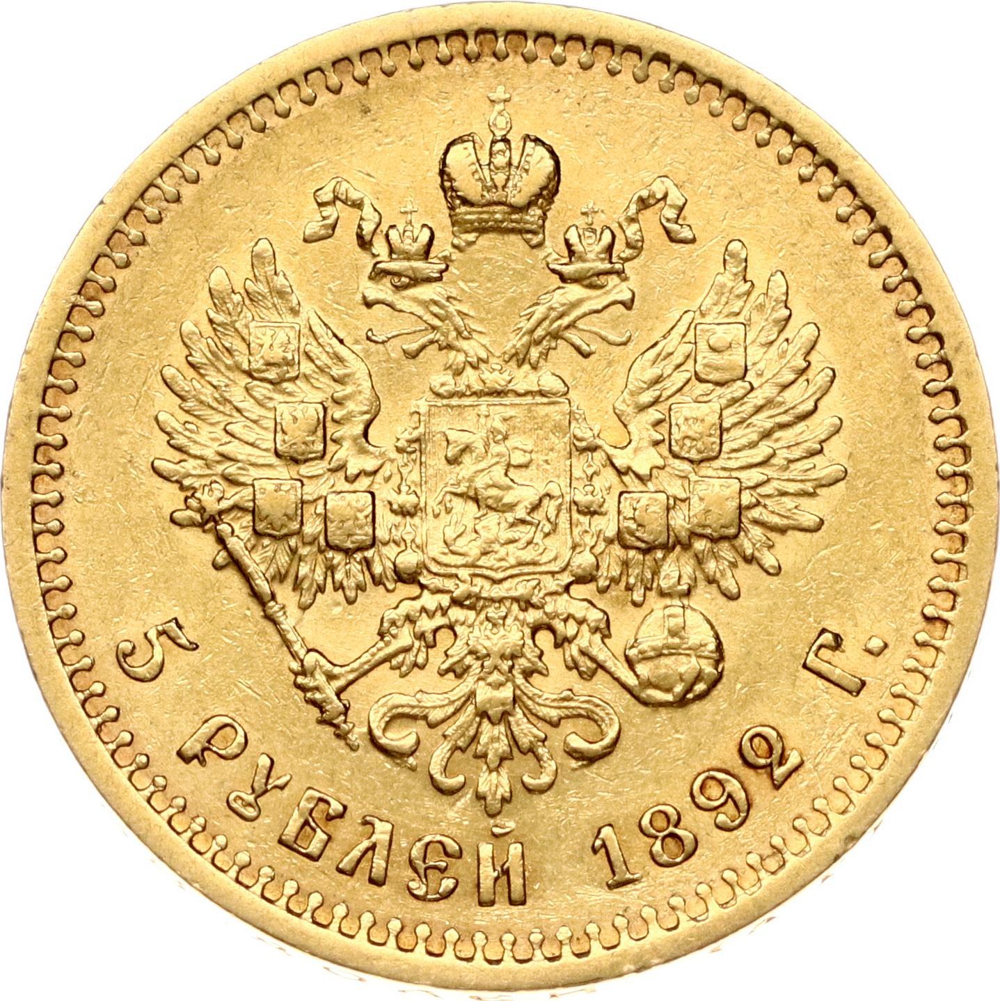 Russia. Alexander III (1881-1894). 5 Roubles 1892 АГ, St. Petersburg. Gold 6.42 g. Bitkin 37.