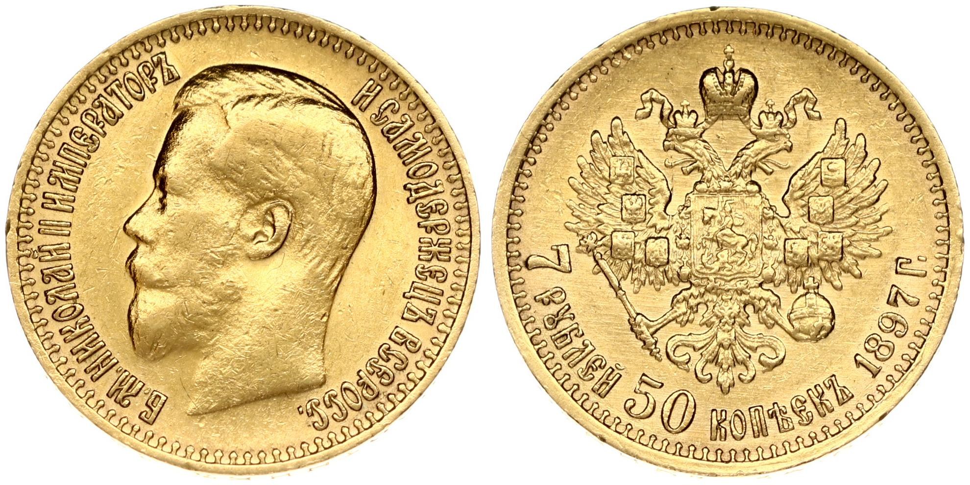 Russia 7.5 Roubles 1897 (АГ) St. Petersburg. Nicholas II (1894-1917). Obverse: Head left. Reverse...