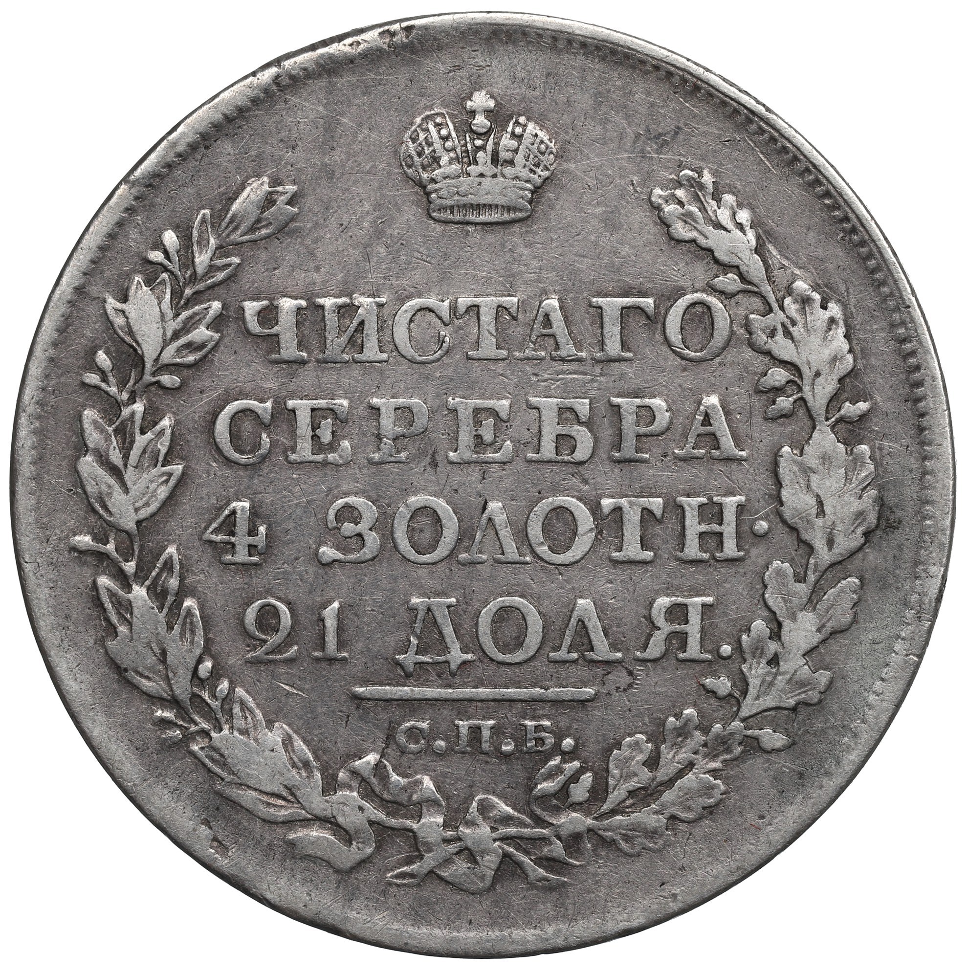 Rewers: w wieńcu laurowo-dębowym ukoronowany napis: ЧИСТАГО/СЕРЕБРА/4 ЗОЛОТН./21 ДОЛЯ./С.П.Б.;