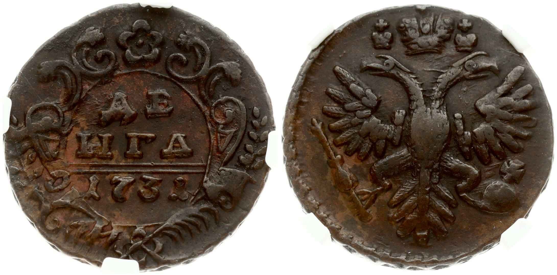 Russia. Anna Ioannovna (1730-1740). Denga 1731. Copper. Bitkin 272. NGC XF 40 BN