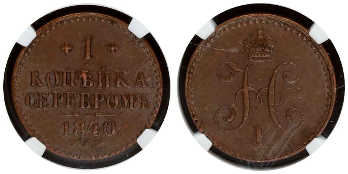 Russia Kopeck 1840 СПМ NGC AU 53 BN