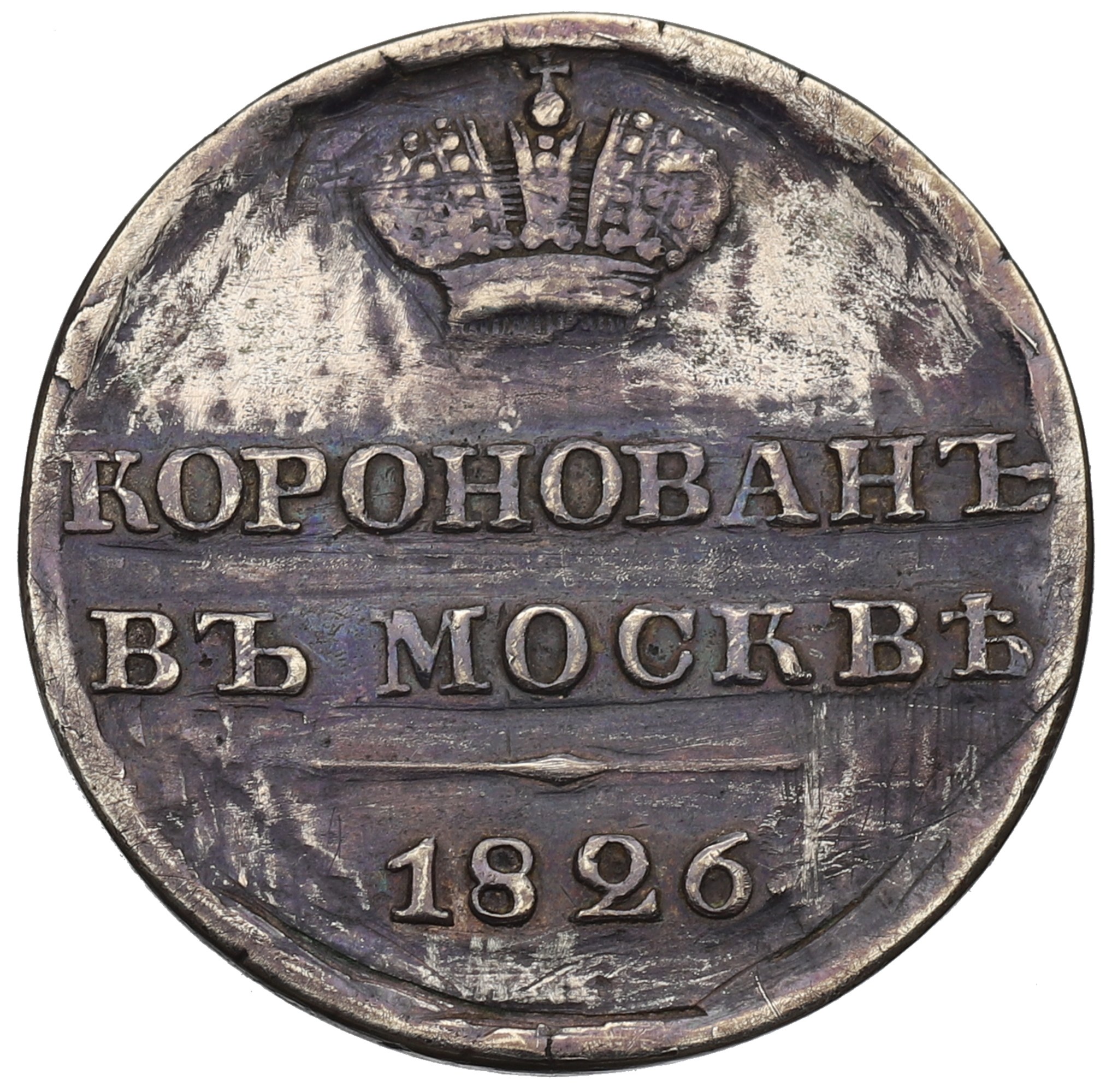 Rewers: Korona, poniżej legenda КОРОНОВАНЪ ВЪ МОСКВҌ 1826.