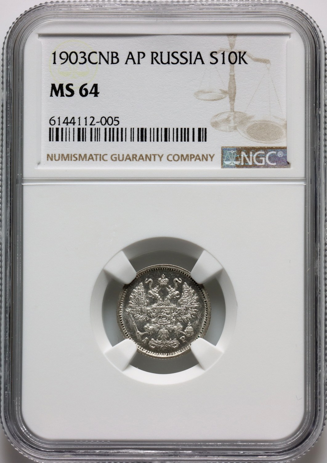 Russia, Nicholas II, 10 Kopecks 1903 СПБ AP, St. Petersburg