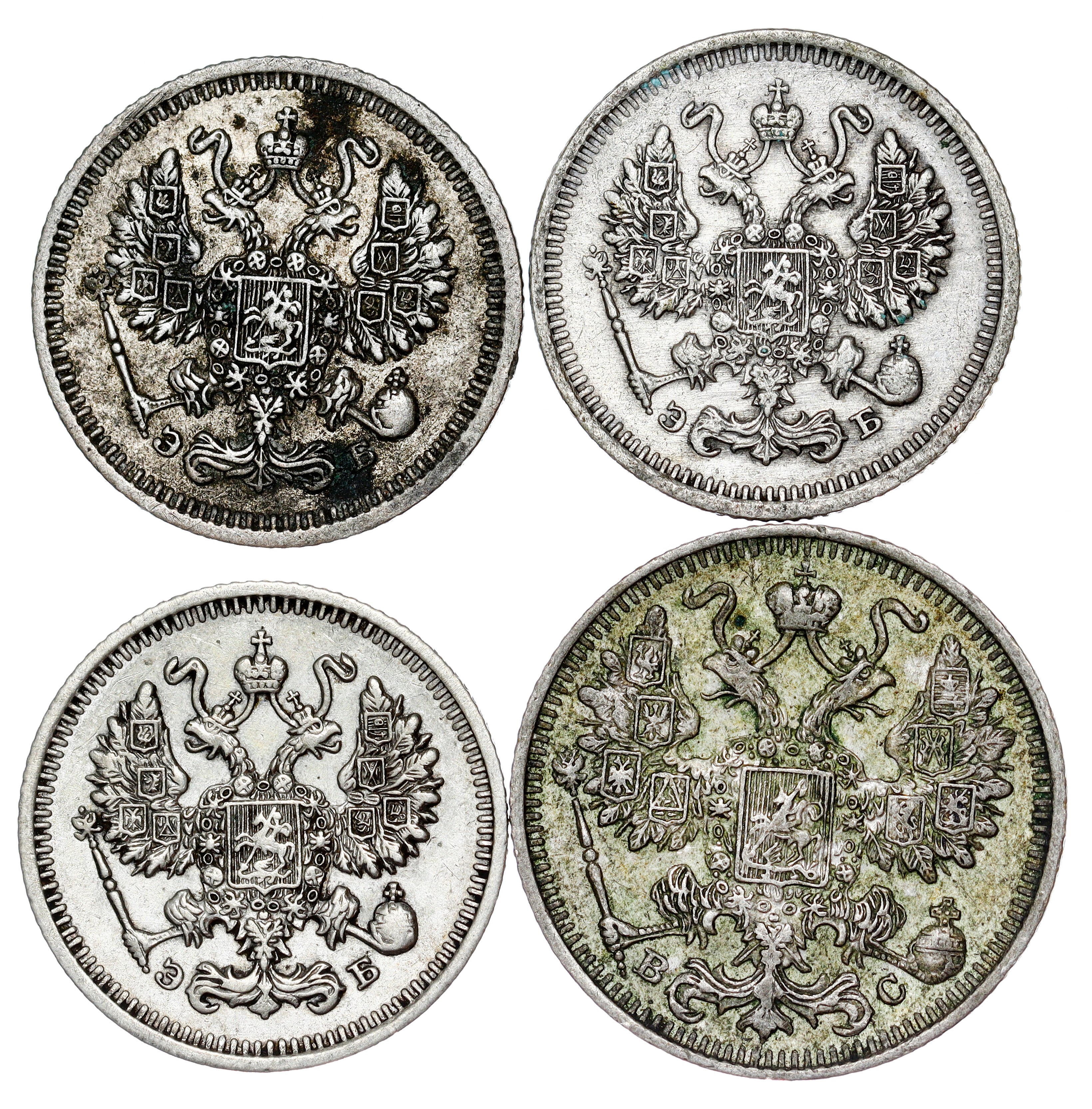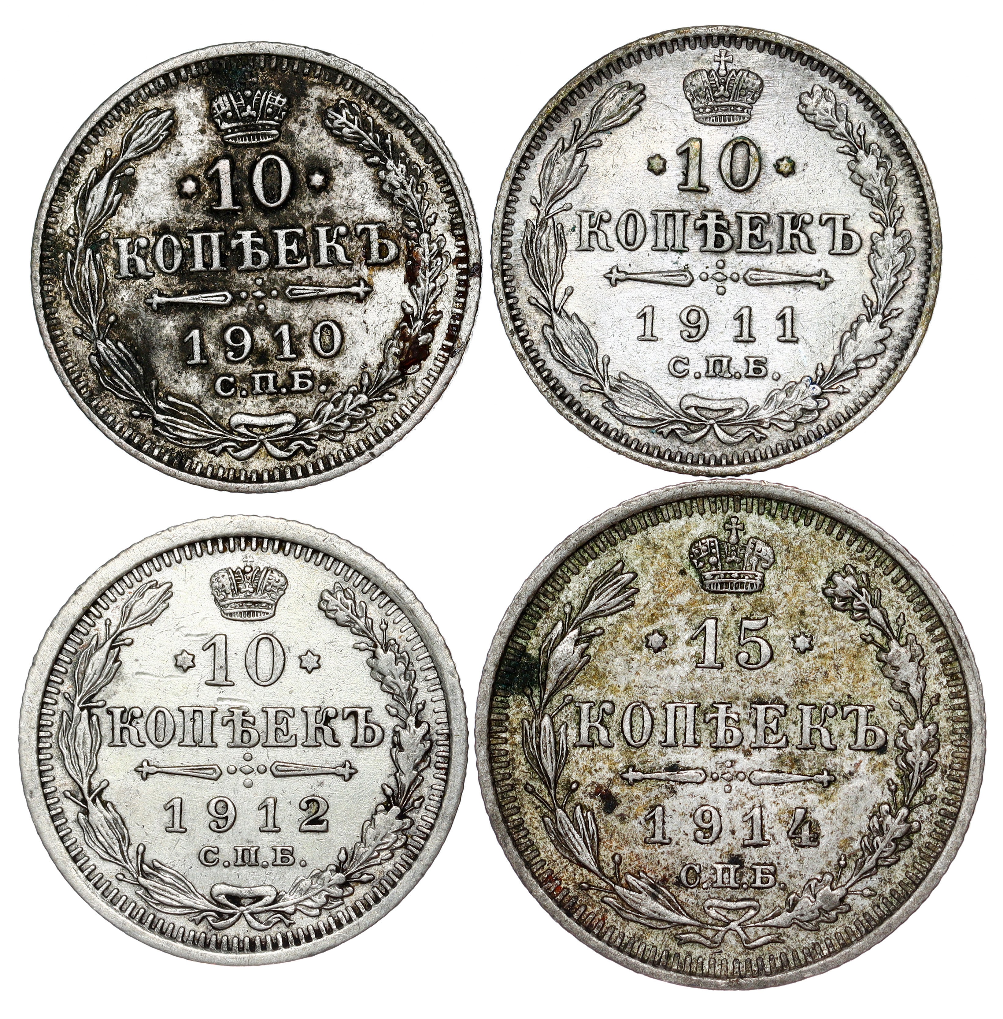 Russia - Nicholas II. , 15, 10 Kopecks LOT - 4 pcs