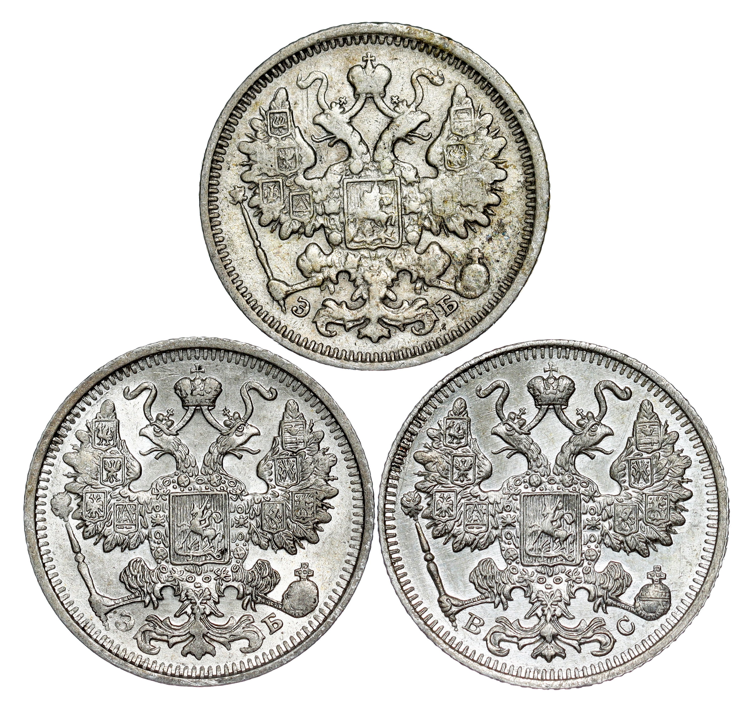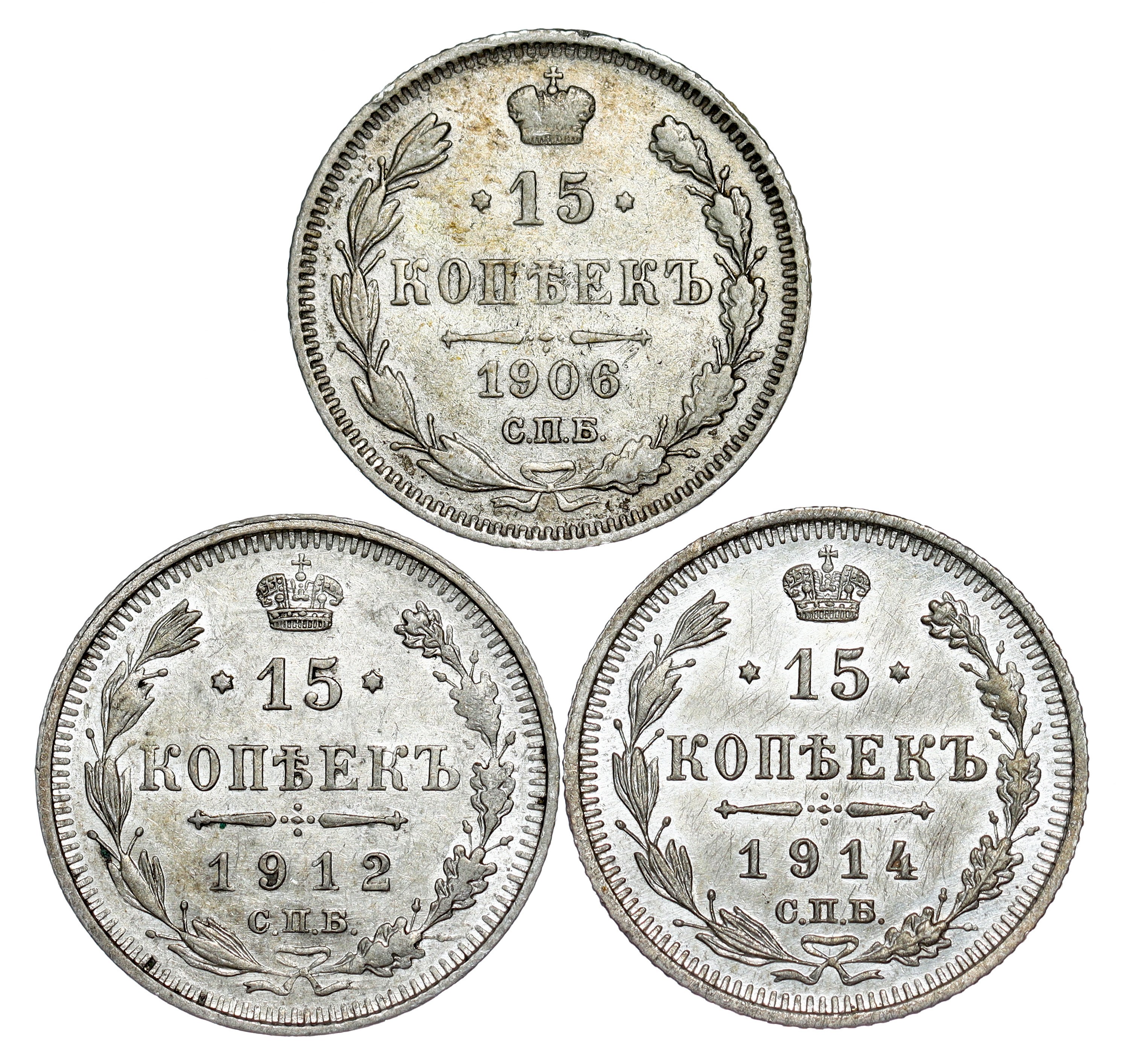 Russland - Nikolaus II., 1894-1917. 15 Kopeken LOT - 3 pcs
