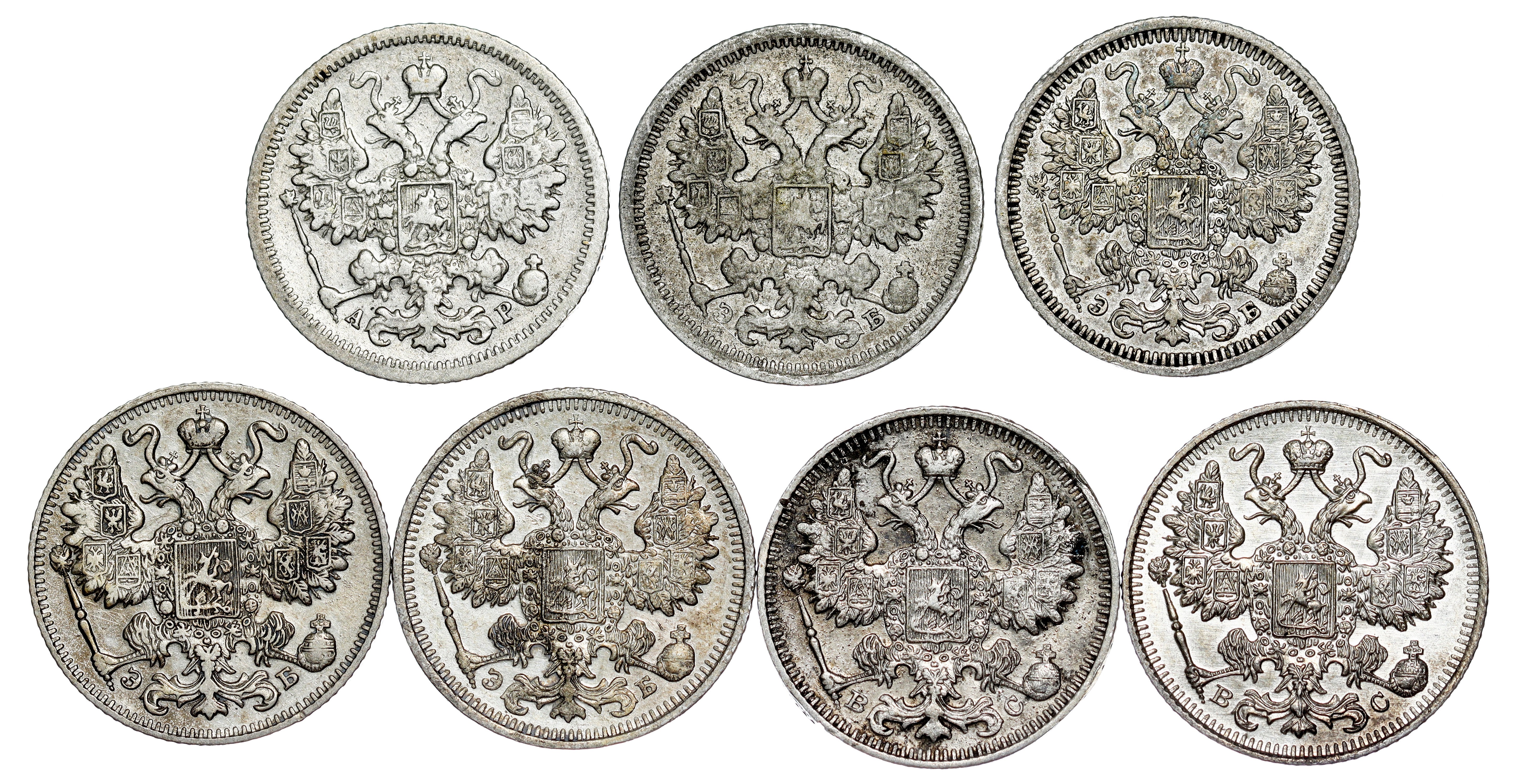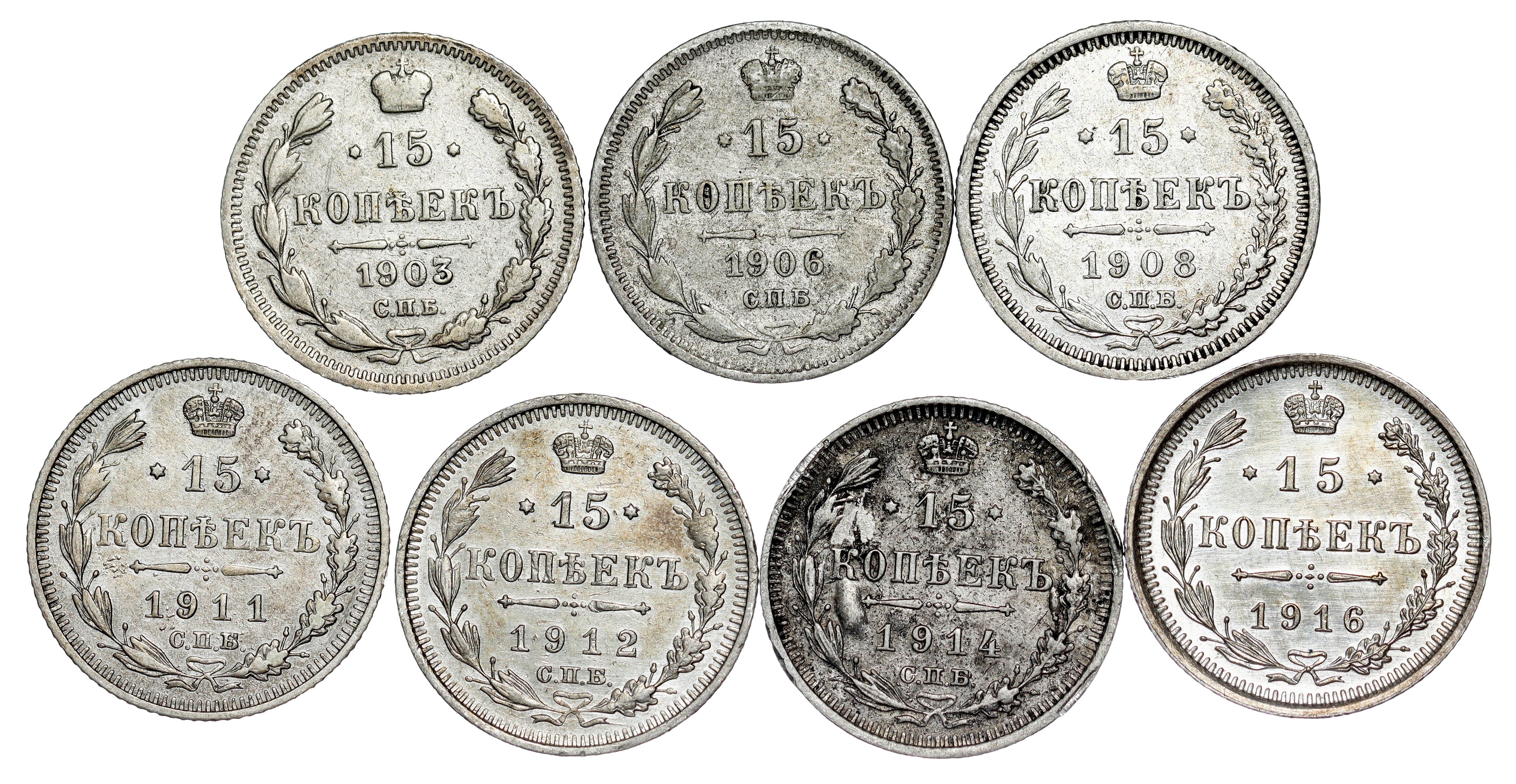 Russland - Nikolaus II., 1894-1917. 15 Kopeken LOT - 7 pcs