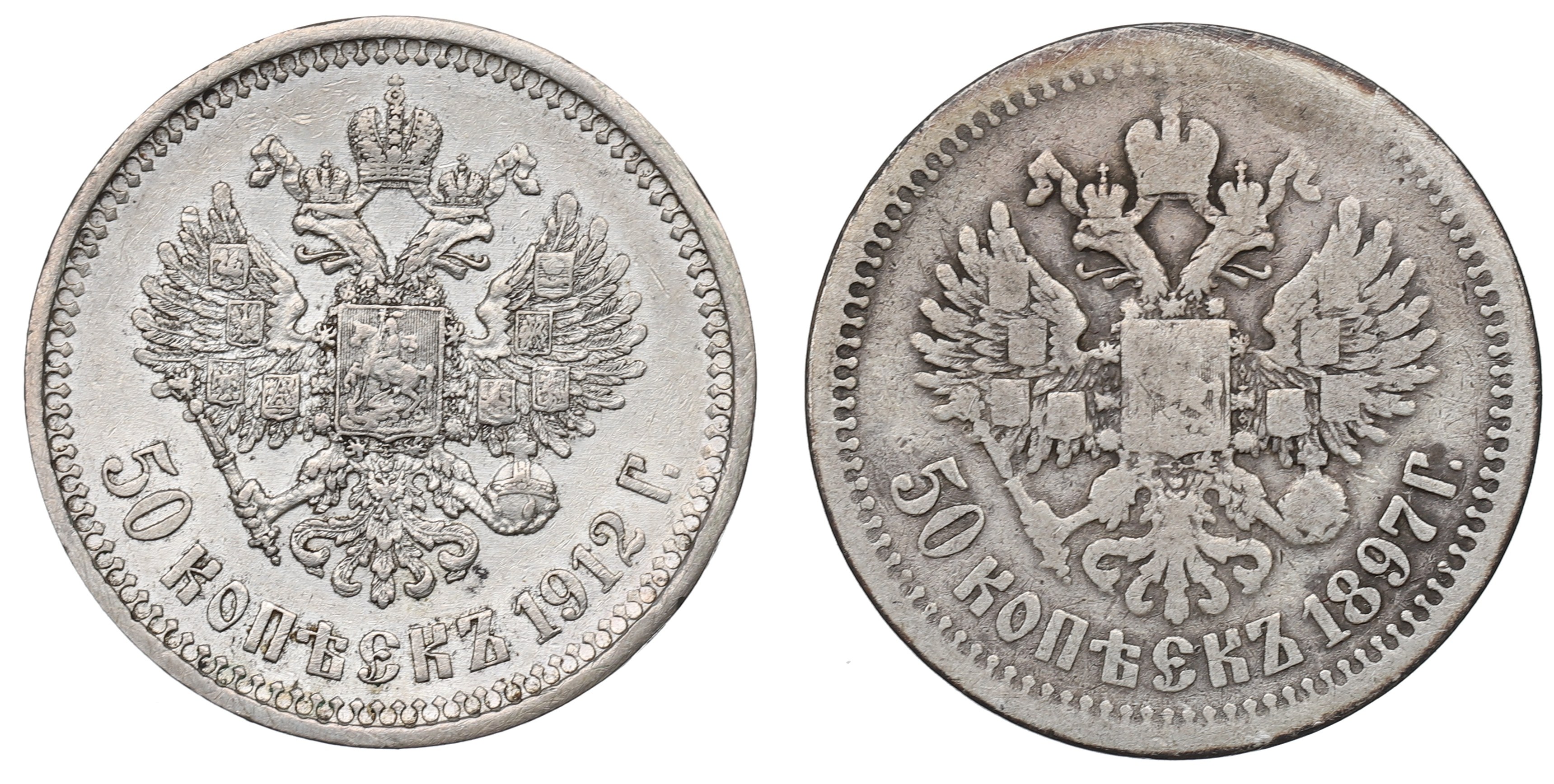 Russia, Nicholas II, Lot 50 kopecks 1897-1912