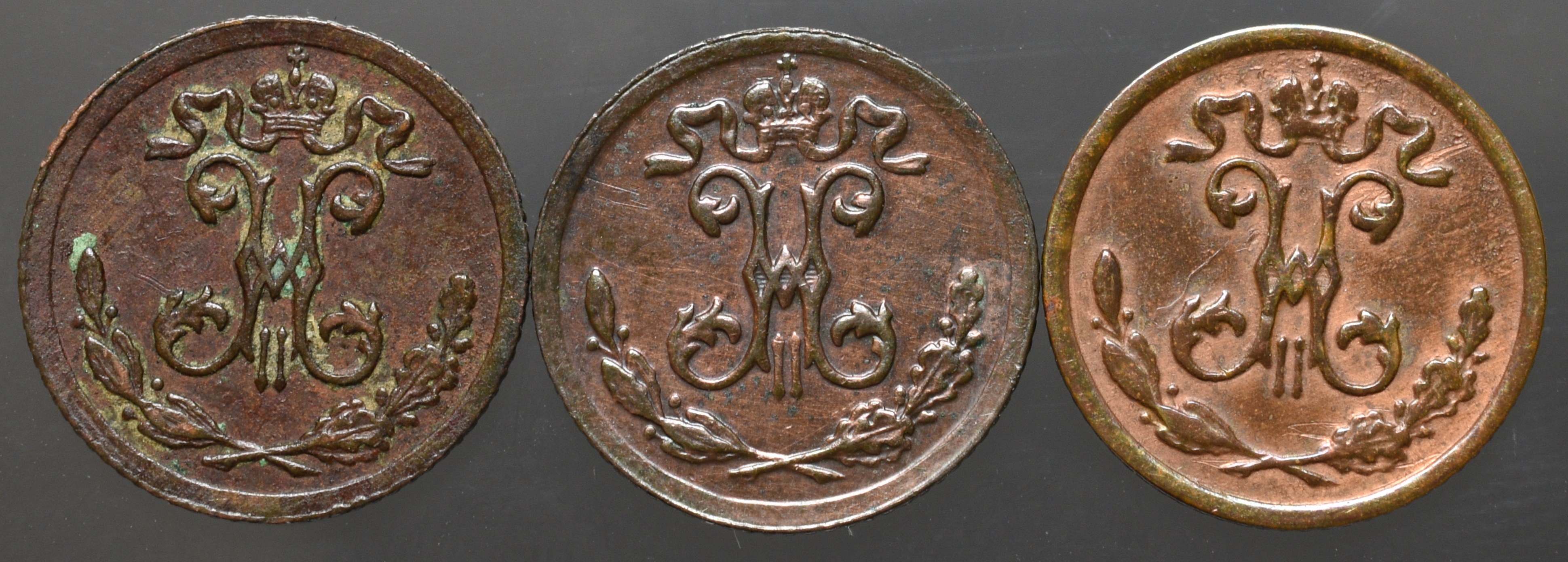 Zestaw 3 egzemplarzy 1/4-kopiejówek z okresu panowania Mikołaja II.