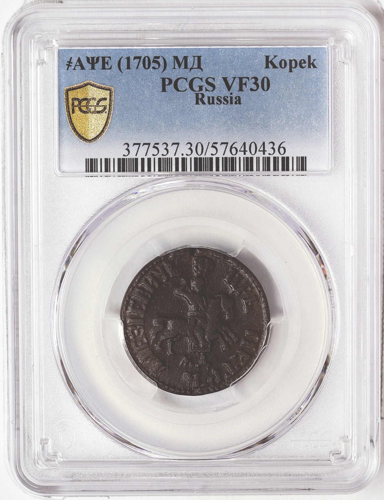 Russia, Peter I, 1 Kopek 1705, МД Kadashevsky