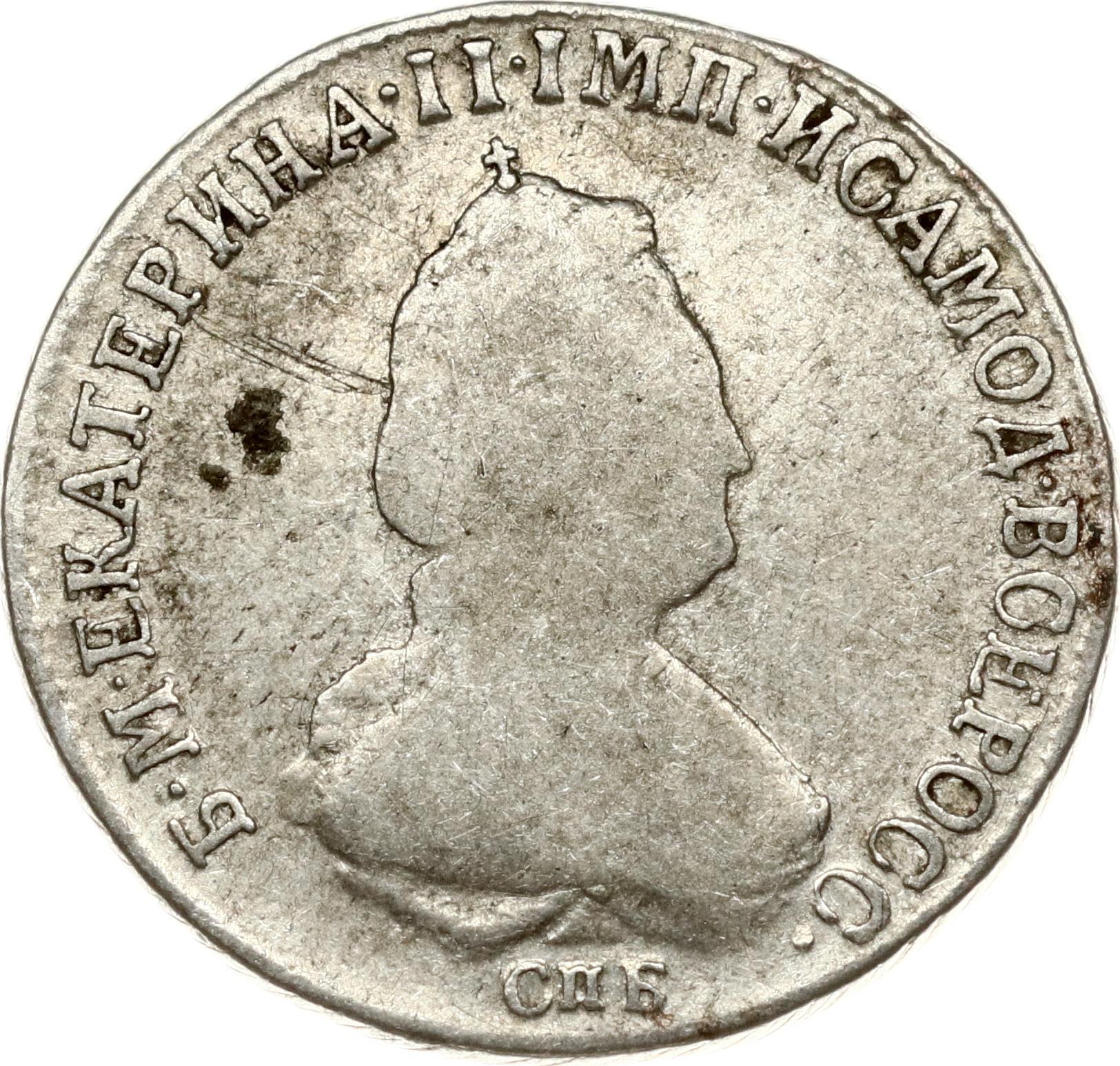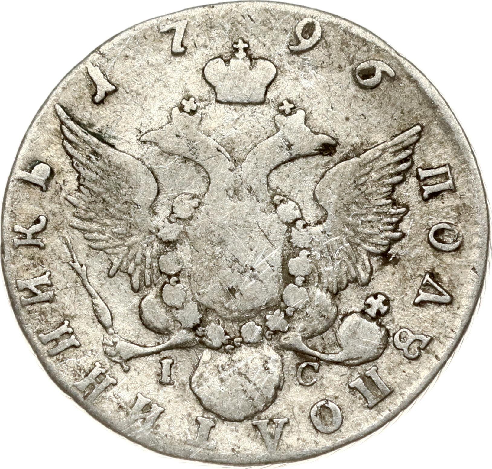 Russia. Catherine II (1762-1796). Polupoltinnik 1796 ???-I?, St. Petersburg. Silver 5.28 g. Bitkin 362.